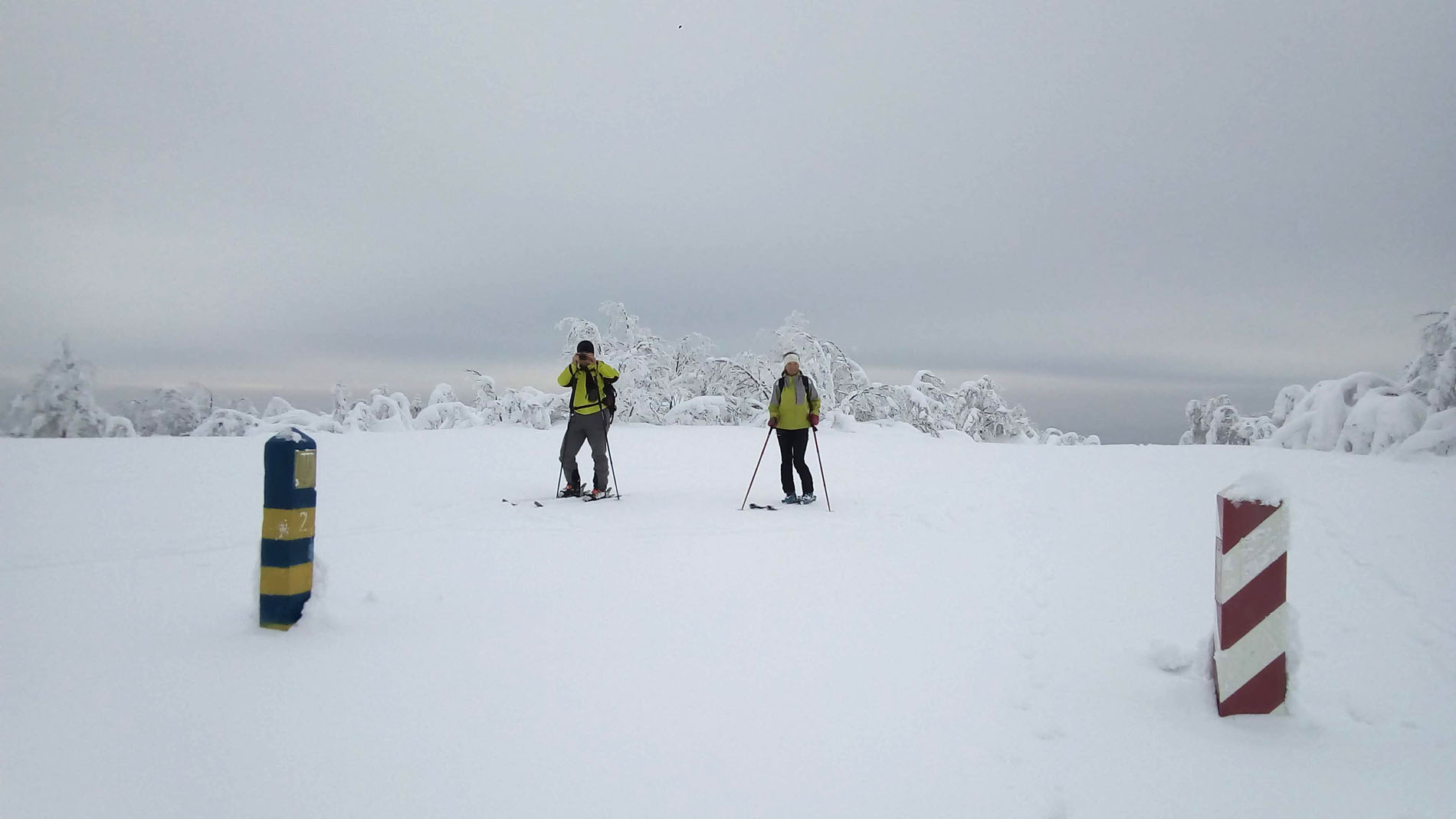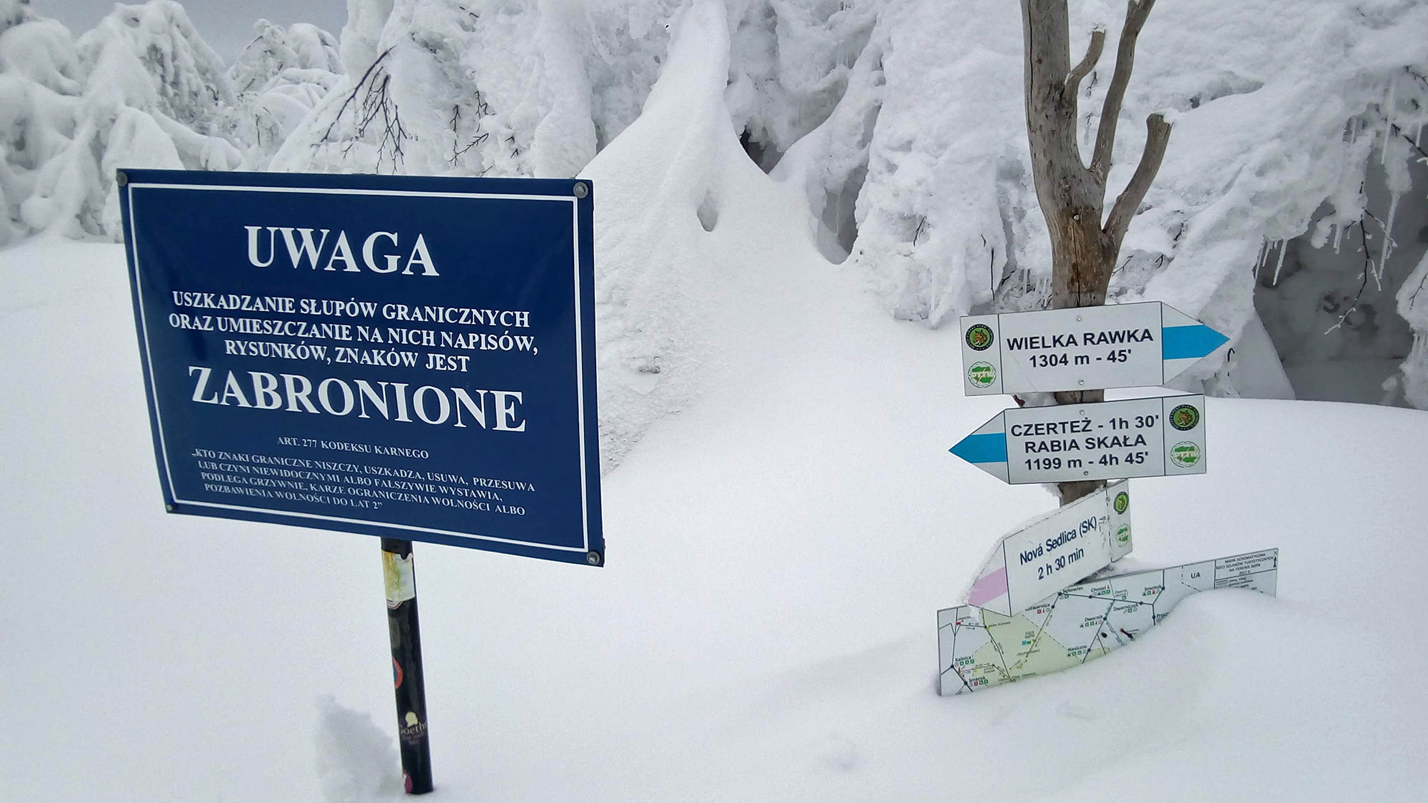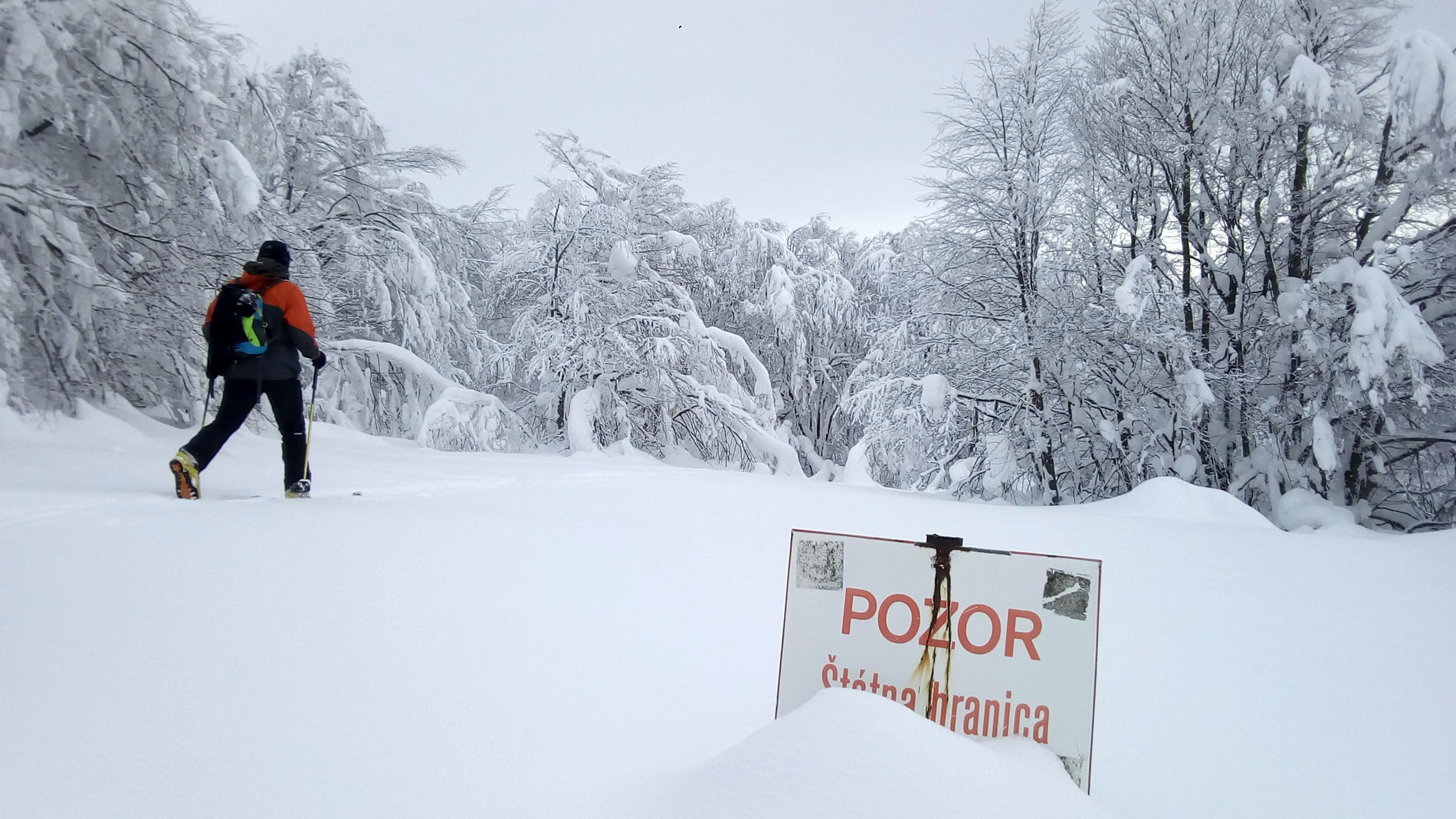 Dva metre snehu dokonale zakryli okolité lesy zapísané v UNESCO, všetko okrem kamenného stĺpu a orientačných tabuliek. Aby toho nebolo málo, len pár km odtiaľ na ukrajinskej strane pri obci Kňahyňa v roku 1966 spadol 500 kg meteorit. Možno ako akýsi vesmírny pozdrav tomuto čarovnému miestu...