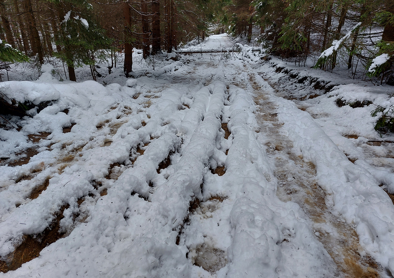Ešte som špekuloval, či to do Stankovian neotočíme okľukou cez Fedorovo, lebo viem, aká býva cesta po žltej značke rozrytá od lesných strojov. Ale mali sme už len tak akurát času, aby sme sa nemuseli moc náhliť, tak sme nevymýšľali. A cesta bola ozaj taká, no, ako to slušne povedať? Čo už, veď už sme dávno vyšli z rezervácie a drevo treba. Len či by to nešlo dáko citlivejšie, nie potokom ho ťahať... Ale všetko dobre dopadlo a z vlaku nás nevyhodili, tak až také zlé to blato nakoniec nebolo. Každopádne Šíp odporúčam každému a za každého počasia, a aj tá zachádzka cez Fedorovo sa oplatí.