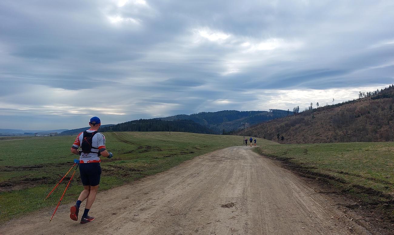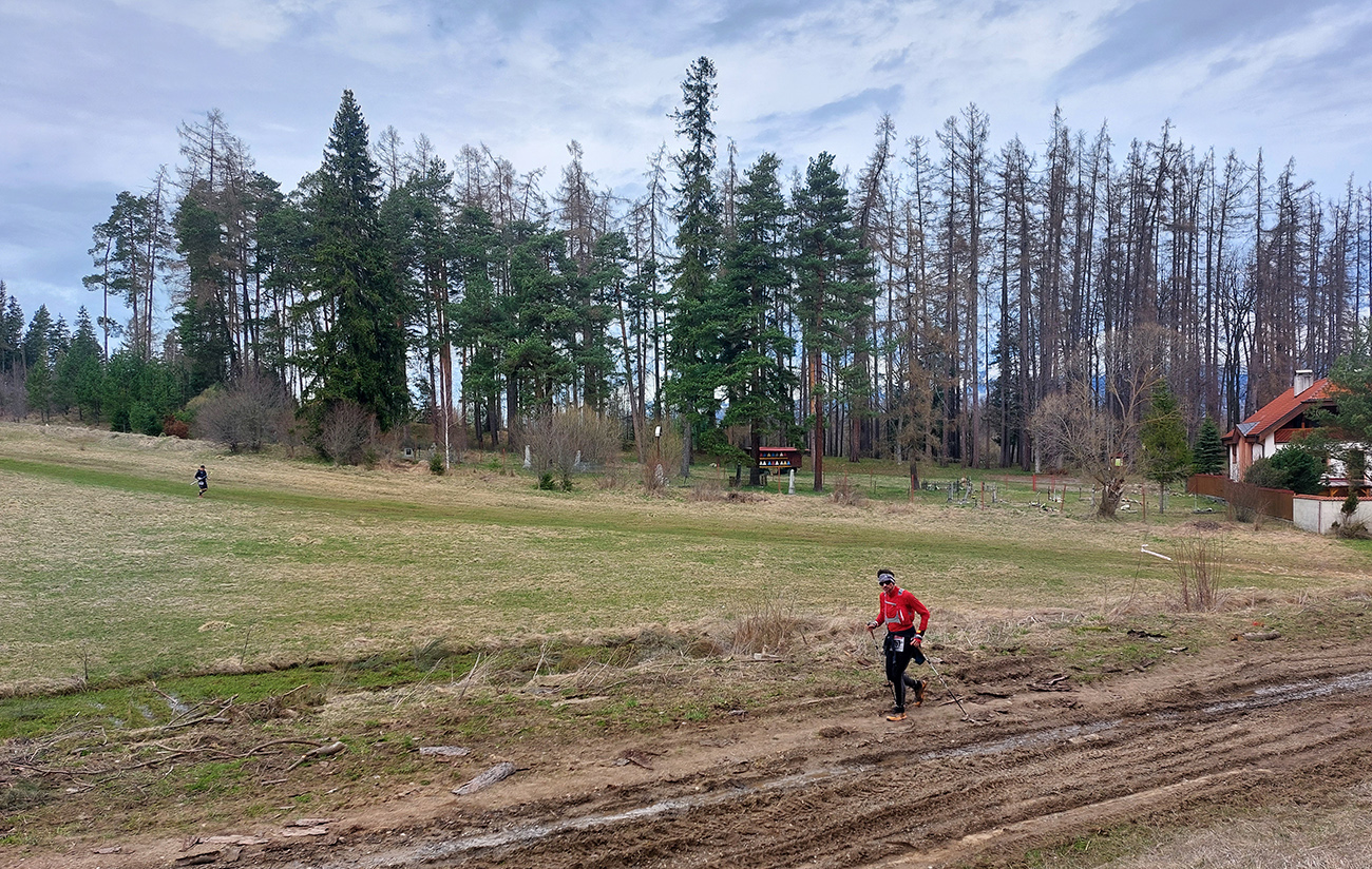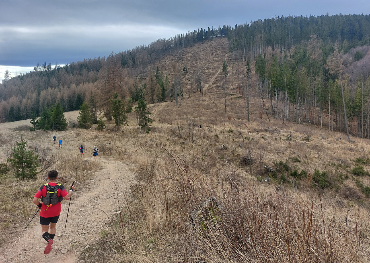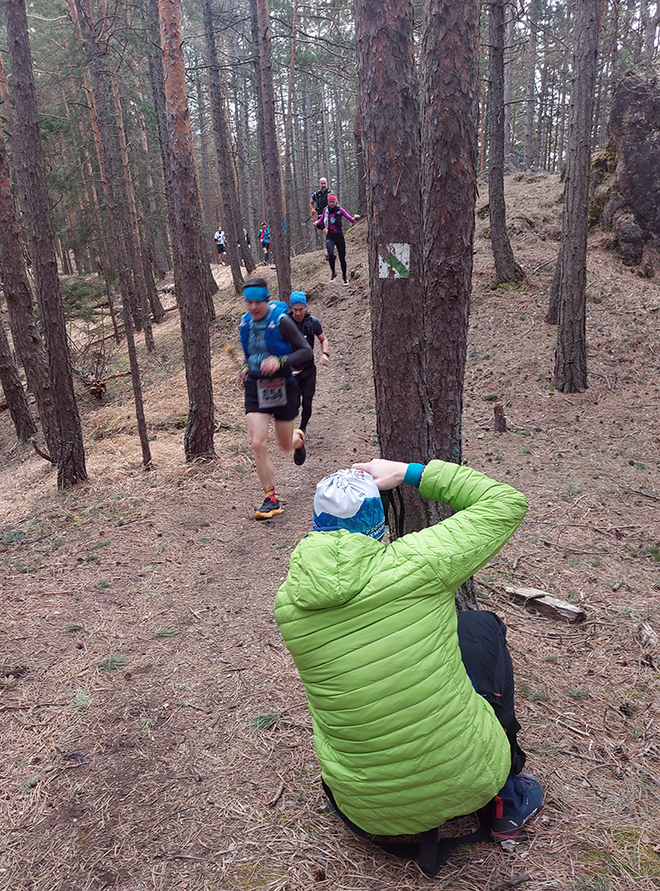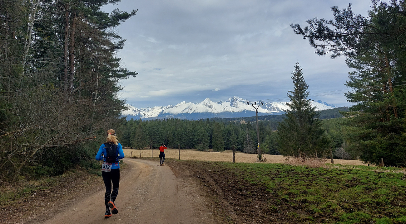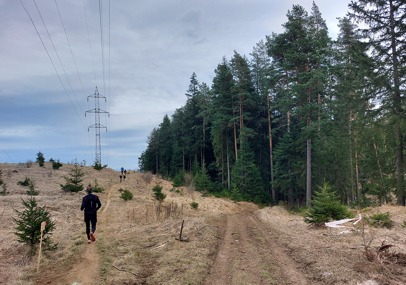 Pre záujemcov je ale aj tak najdôležitejšia trať, ako ju vidno tu hore. 44/1900 je síce údaj, ktorý o niečom hovorí, ale po čom sa beží a ako sa tie metre naberajú, to je niečo iné. Tak beží sa prevažne pohodlne po mäkkom: hlina, tráva, ihličie. V prvej tretine najmä lesné single, od prvej občerstvovačky najmä lesné cesty, za Šuňavou krásne cesty cez lúky. Asfaltu tak málo, že nestojí za reč. Veď dole v galérii vidno. Značenie dokonalé, tam sa zablúdiť nedalo ani naschvál.