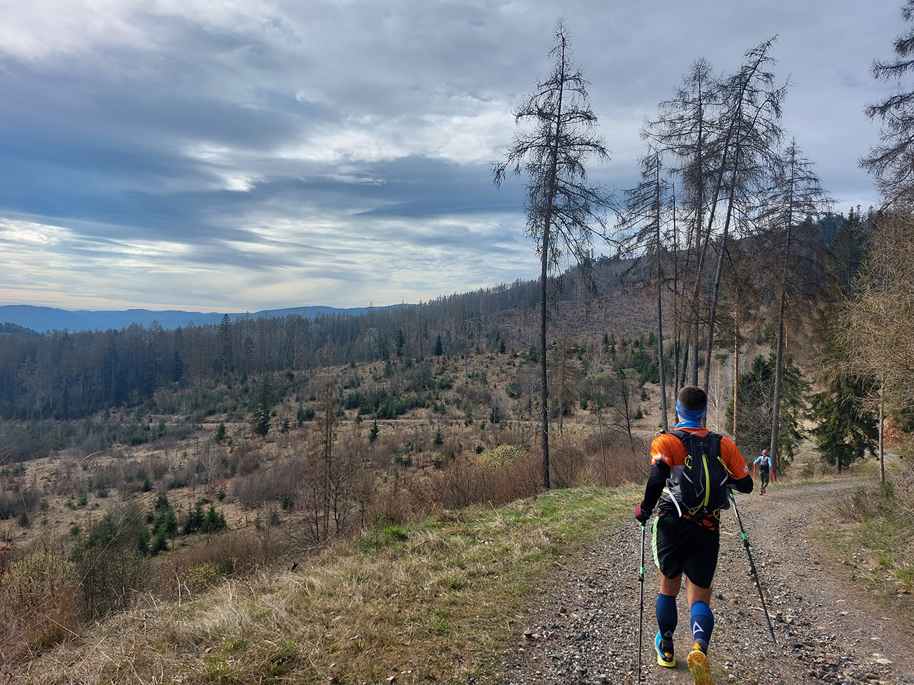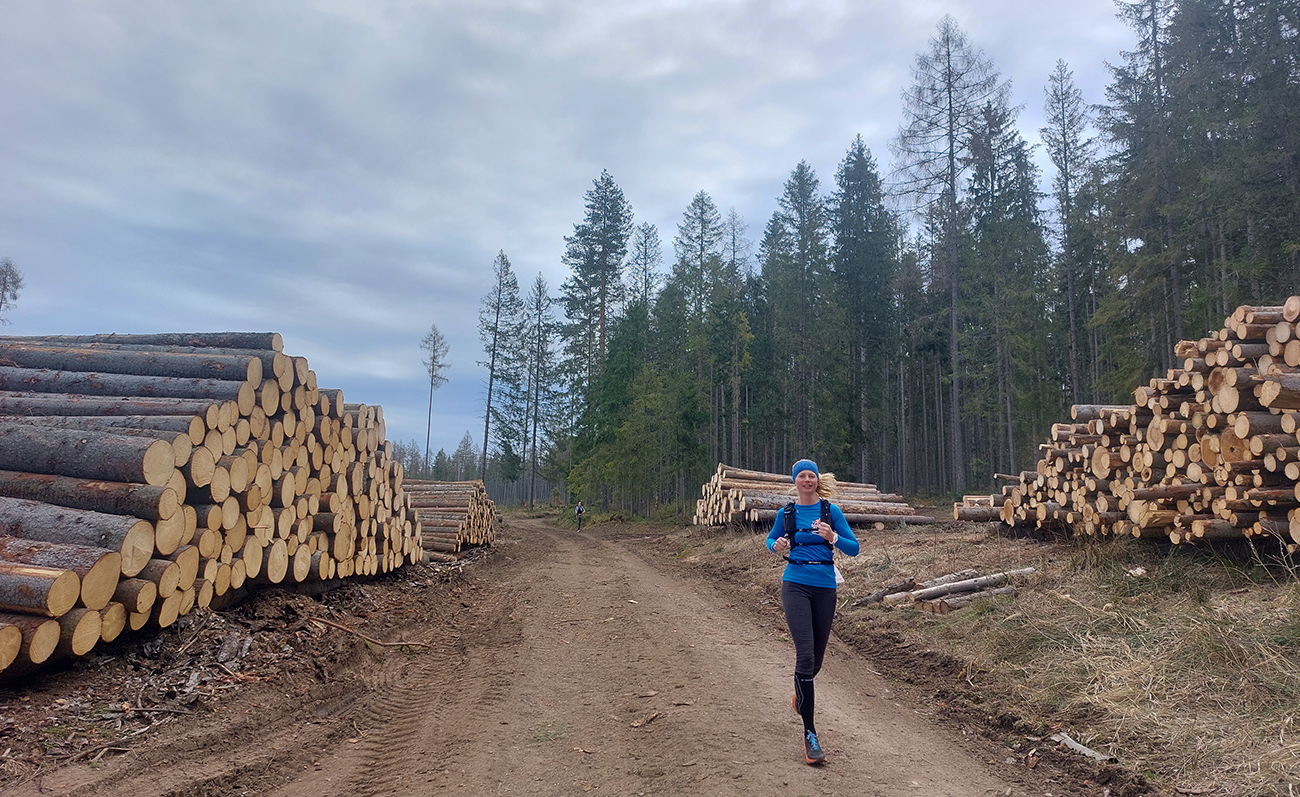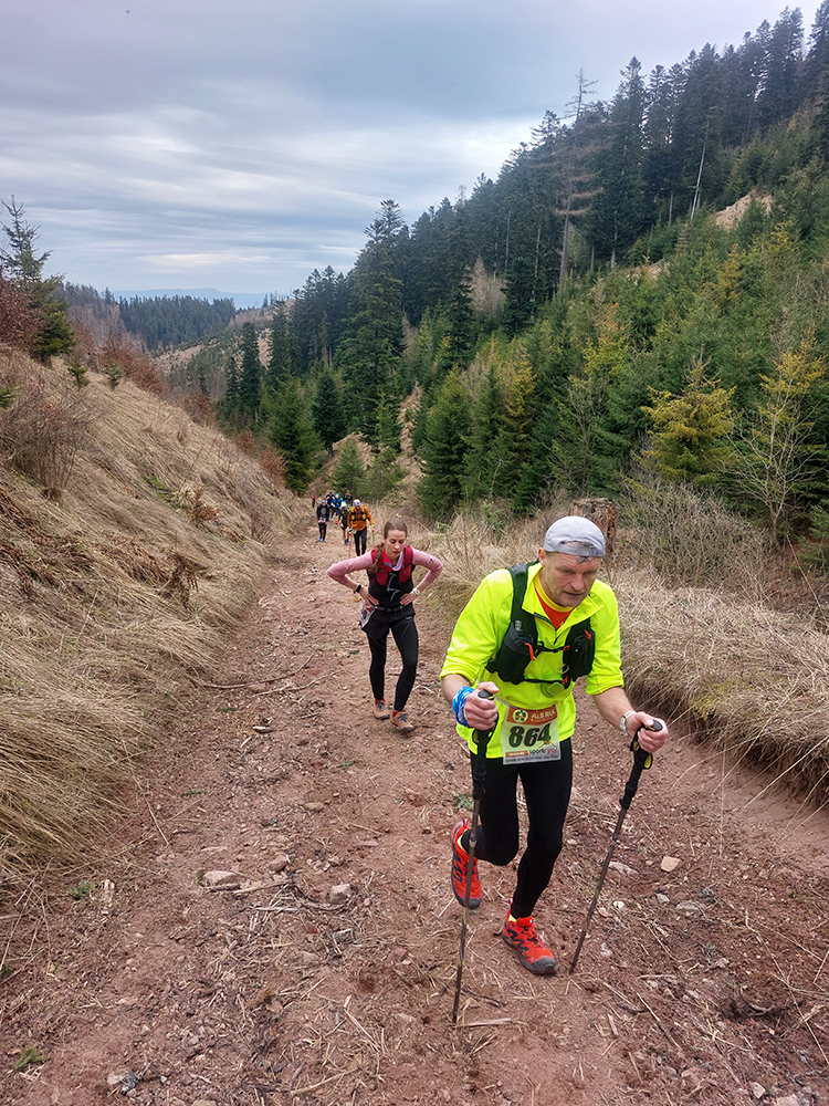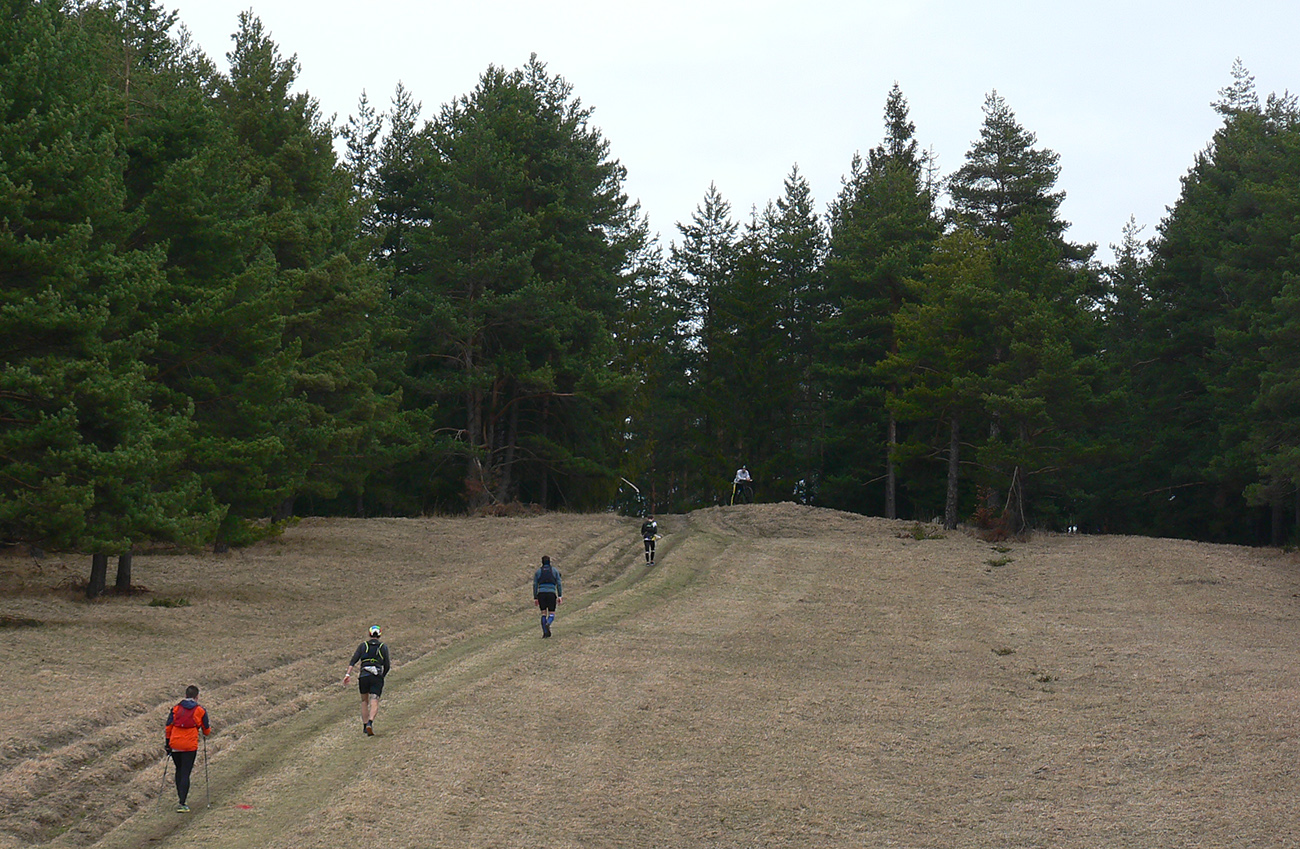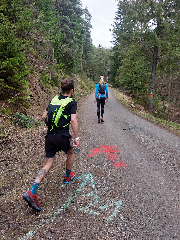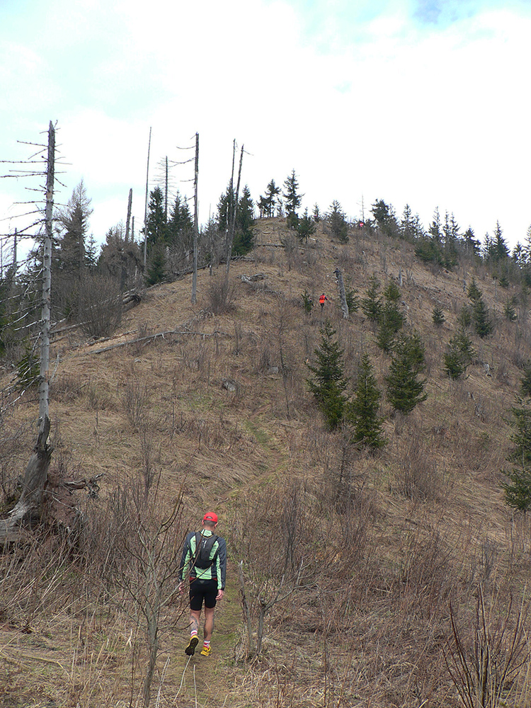 Pre záujemcov je ale aj tak najdôležitejšia trať, ako ju vidno tu hore. 44/1900 je síce údaj, ktorý o niečom hovorí, ale po čom sa beží a ako sa tie metre naberajú, to je niečo iné. Tak beží sa prevažne pohodlne po mäkkom: hlina, tráva, ihličie. V prvej tretine najmä lesné single, od prvej občerstvovačky najmä lesné cesty, za Šuňavou krásne cesty cez lúky. Asfaltu tak málo, že nestojí za reč. Veď dole v galérii vidno. Značenie dokonalé, tam sa zablúdiť nedalo ani naschvál.