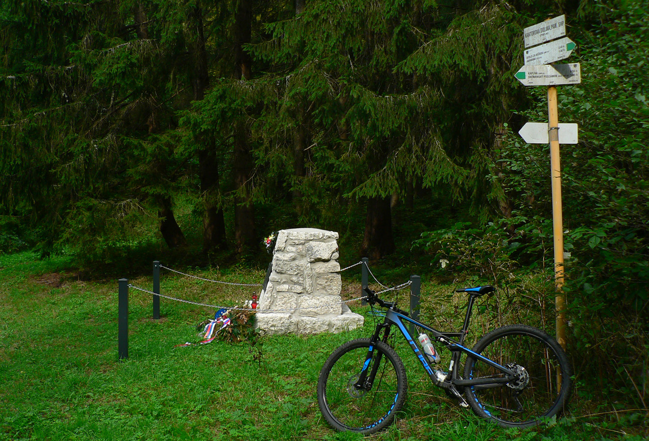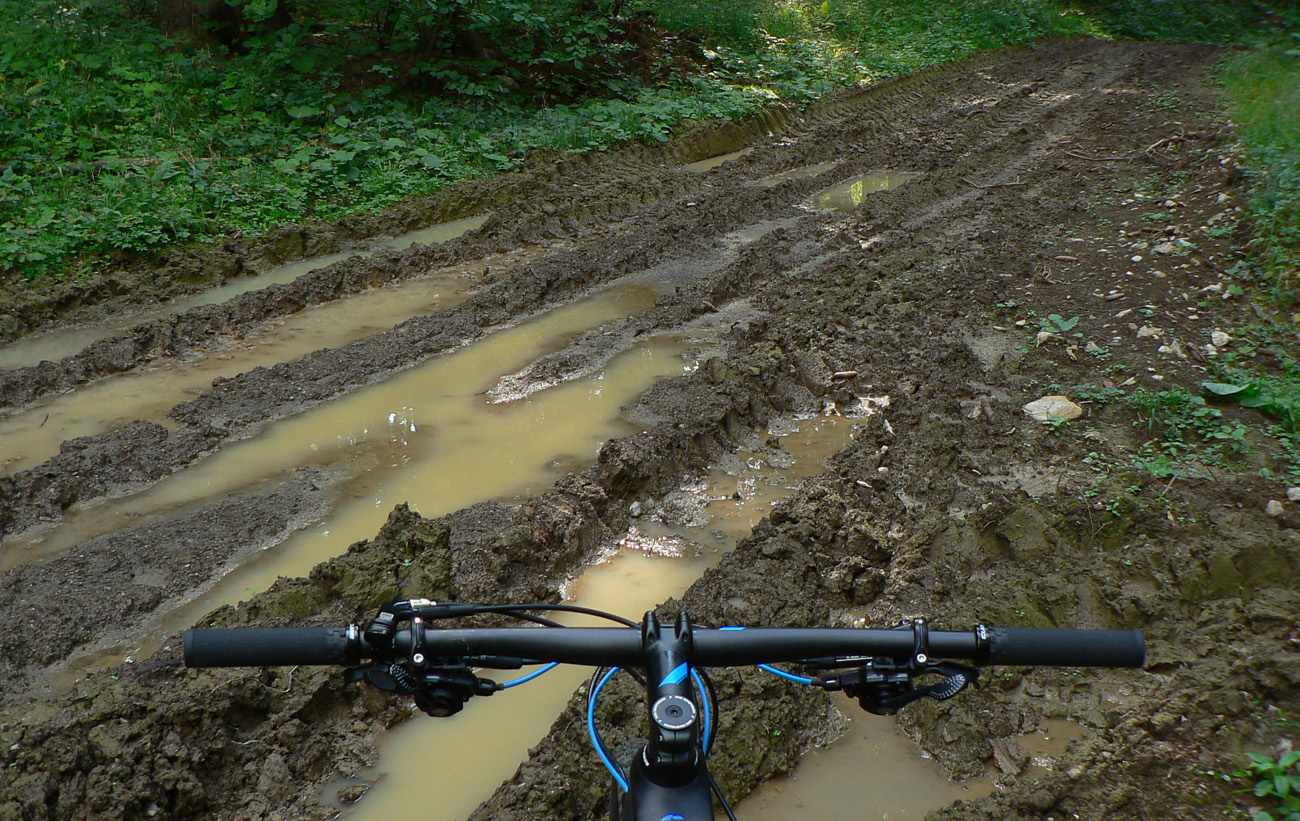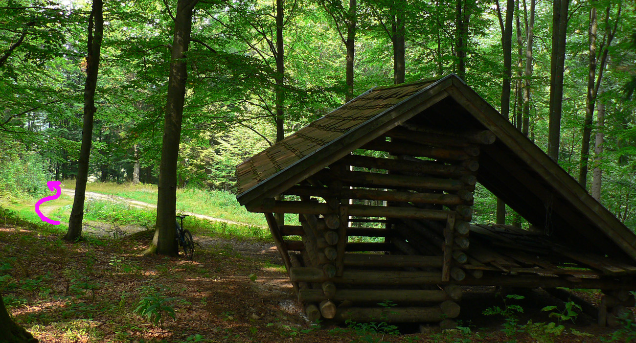 Zosvištím dolinou a moja by mala byť prvá výrazná odbočka doľava, popod Lučenec. Mala by ma doviesť na žltú značku a po nej dole do Sklabinskej doliny (ku smerovníku Medzi mníchmi). Tak aj je, odbočka sa nedá minúť. Len tu už je o dosť viac blata, raz aj prenášať musím. Potom žltá - chvíľu na parádu, ale akonáhle sa skloní do strminy, je to katastrofa, tankodrom a mordor. Zjazdné len v tomto smere, aj to len tak – tak. Dole studnička a zatáčam doľava, hore Sklabinskou dolinou, po modrej. Malo by to už byť v pohode.