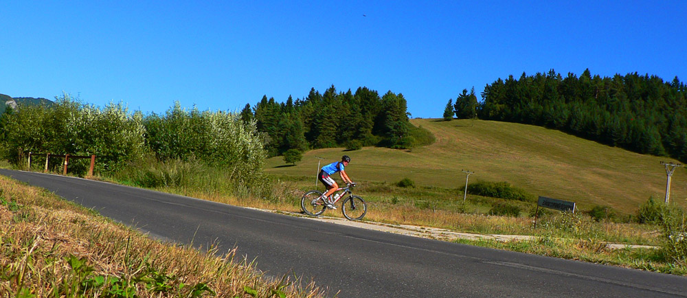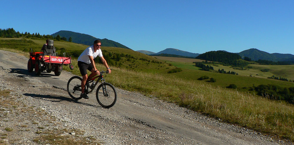 Tam sa dá blbnúť hodiny a hodiny a vidieť odtiaľ na kilometre a kilometre. Ak je teplo, dá sa zájsť po zvážniciach lesom v chládku až na lúky pod Lyscom, ak príde smäd, stačí odbočiť k niektorému salašu a hádam čohosi nalejú :-) Alebo do niektorej z chát v Jasenskej. Povrch je vypasený ako golfový trávnik, bonusom sú ovčie bobky. Treba mať blatník (hovník) aspoň pod bidónom :-)