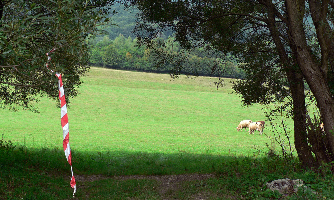 Potom mierne technická vložka dole a hore cez malú úžľabinu, lesným tunelom a z neho zase von na lúky, kde cesta zablúdiť nedá.