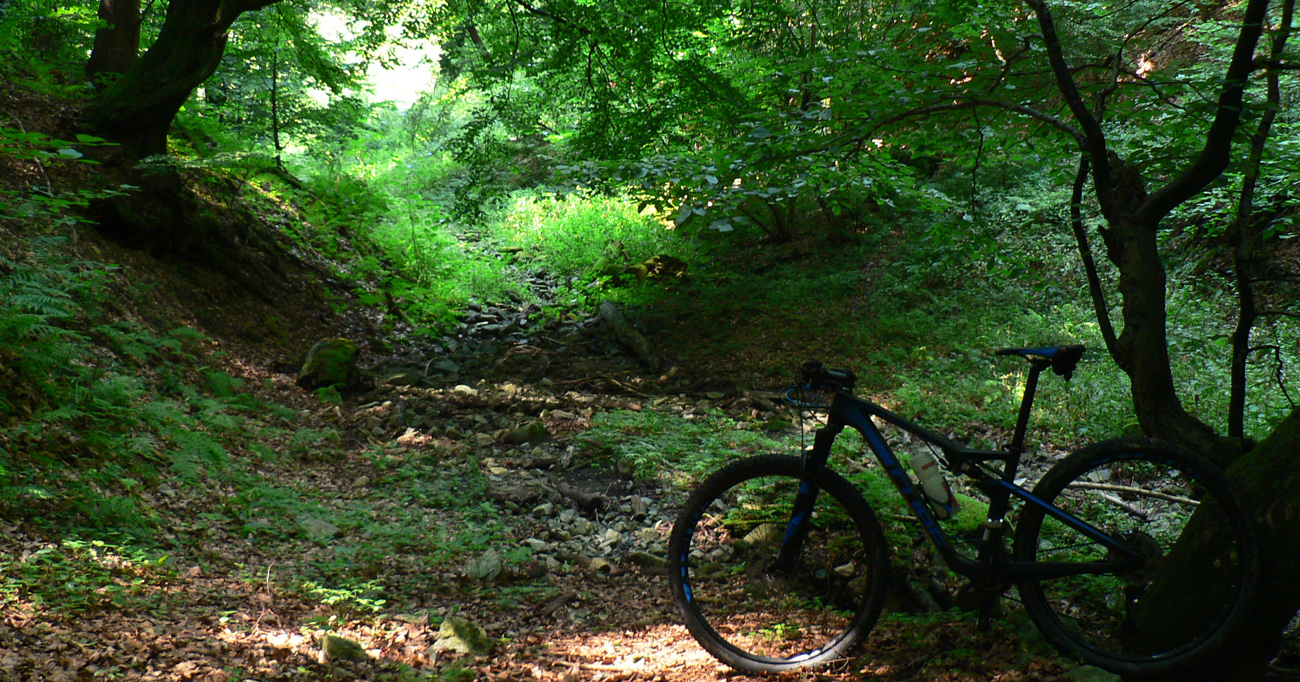 Okolo starej a nádhernej lipy točím ešte doľava a popri poslednej chate dupem kúsok do kopca, kým ma koniec cesty v suchom koryte potoka nezastaví. Suchý potok tu na podhorí? Hej - odkedy vyrazili tunel, voda sa tu na okolí postrácala aj zo studní a tečie z neho von, priamo do Váhu.