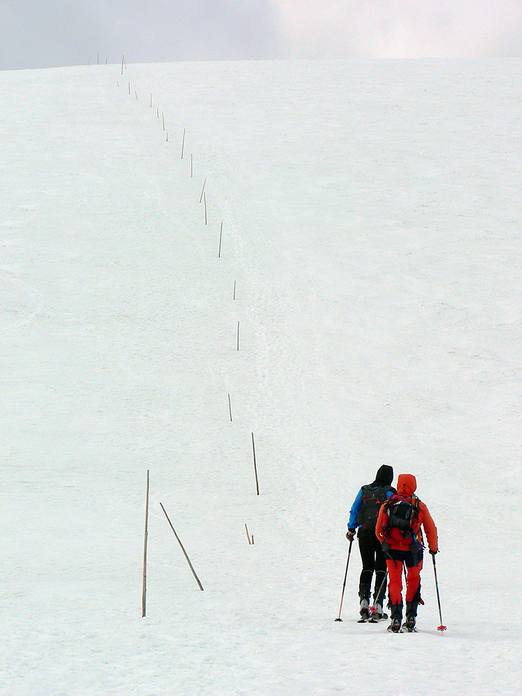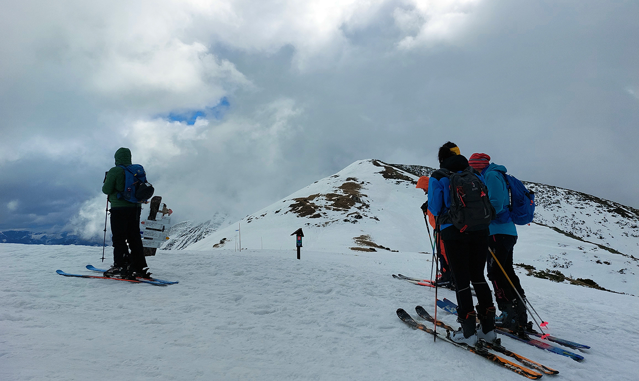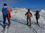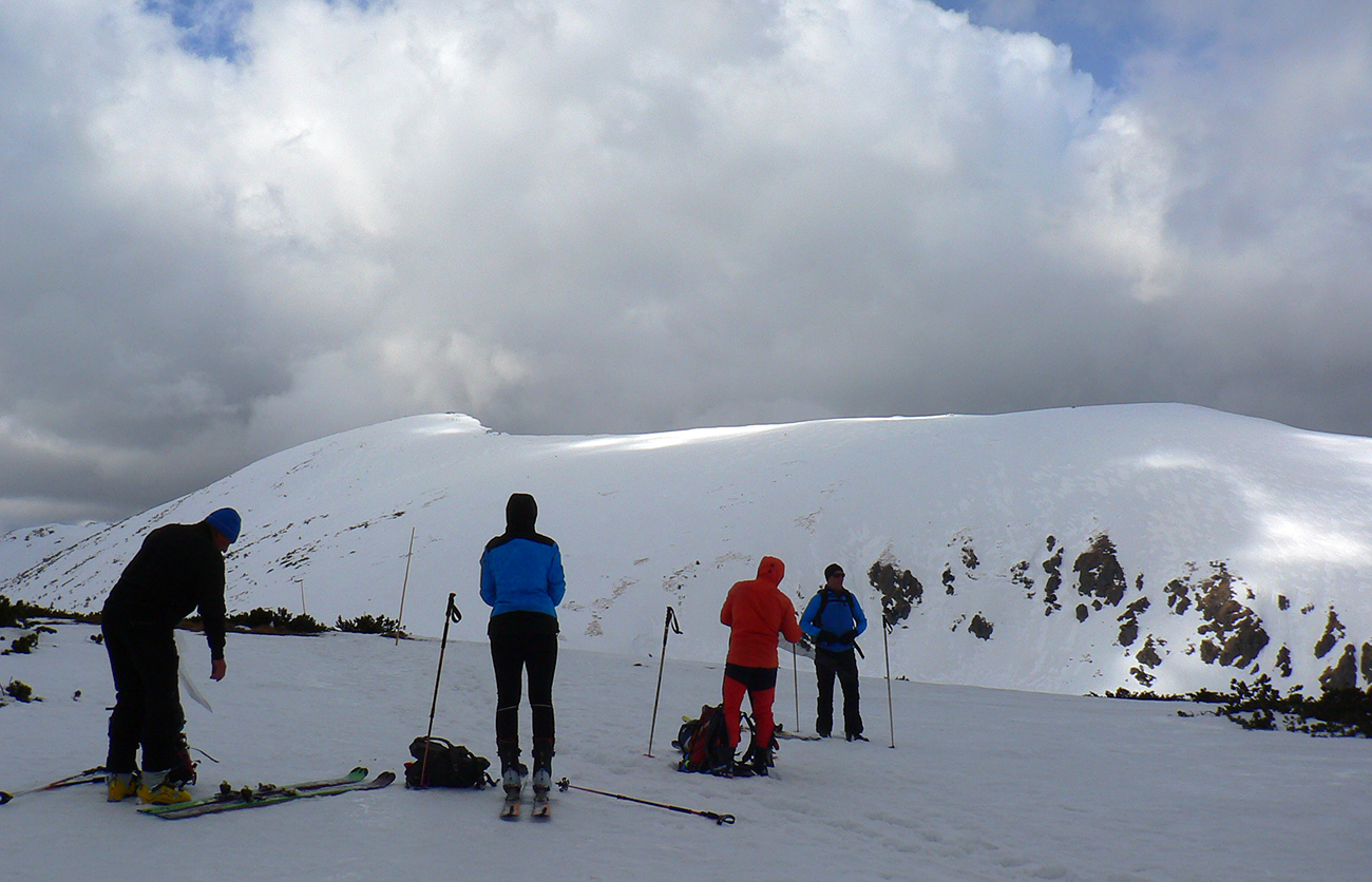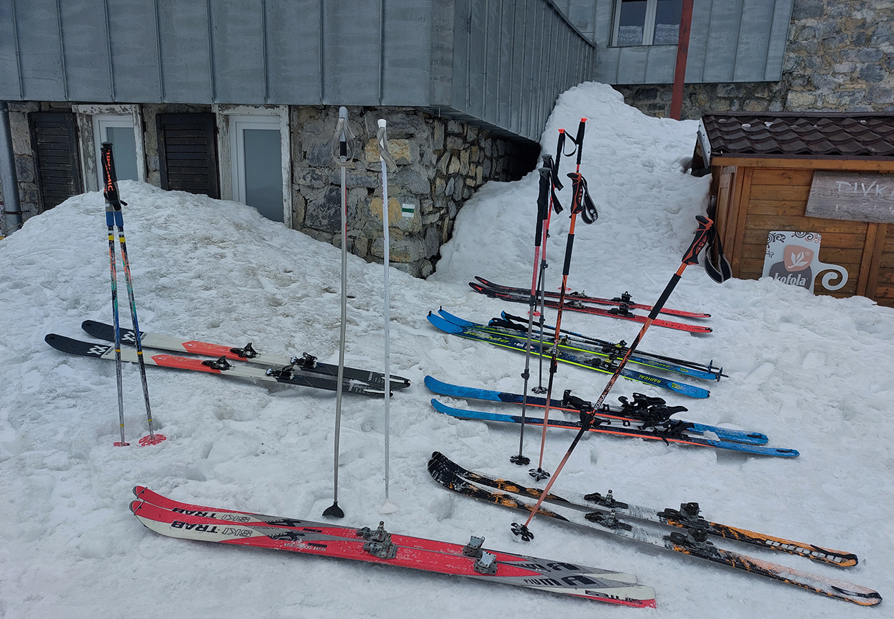 Takže úvod hore na MRŠku spočiatku pohodový, firn sľubne natopený, tiahli davy. Vyššie už to tuhlo, ale výborne držalo, na tom šmirgli. A hore na križovatke zrazu padla dohoda, že najprv do chaty. A tam keď už začali kolovať štamperlíky, už sa dalo tušiť, že to bude na pohodu, nie na výkon. Aj keď ani ten výkon nebol plánovaný. Ale veď dobre, možno aj rozlúčka so zimou to bude, treba jemne. A bola by aj štýlová, lebo presne TU , o kopec vedľa, sme ju zahajovali, presne na nový rok.