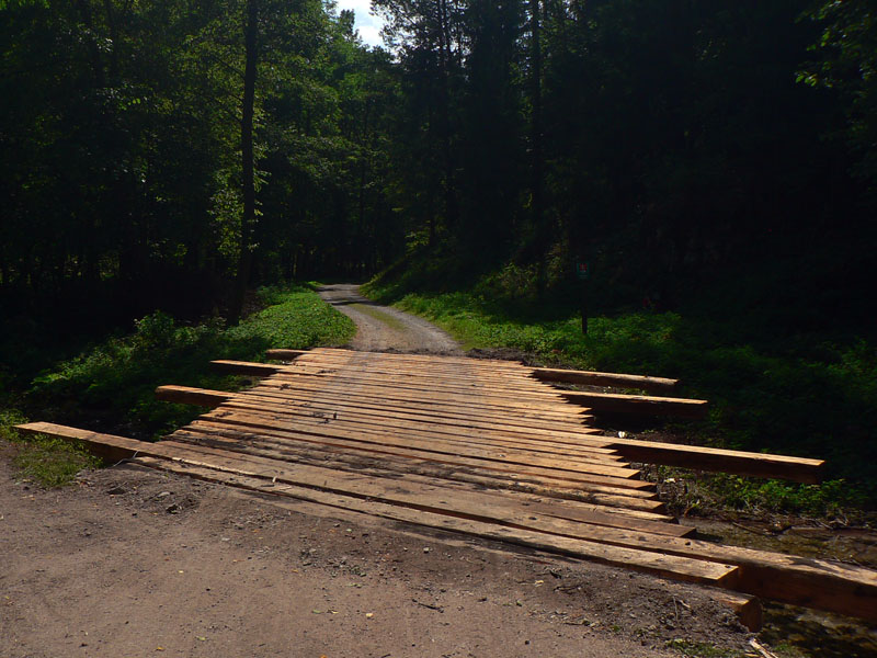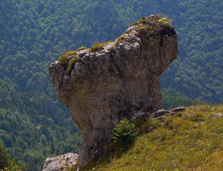 Smerom dole sa treba trocha vrátiť, do sedla. (Chodník z vrcholu na opačnú stranu spomínať nebudeme že? :-) Keďže sa v NP mimo značiek nesmie. Hlavne že tam majú poľovníci zrub...) Dolu do Konského dolu chodník tiež riadne rozmlátený, traverz v strmom svahu. Komu bolo málo, po ceste je ešte jedna vyhliadka (treba odbočiť), hneď ako skončí najväčšia strmina pod sedlom. Potom ešte pár skalných stien popri chodníku a už len nekonečné klesanie čoraz menej strmým Konským dolom až do Gadera – priamo k hotelu.