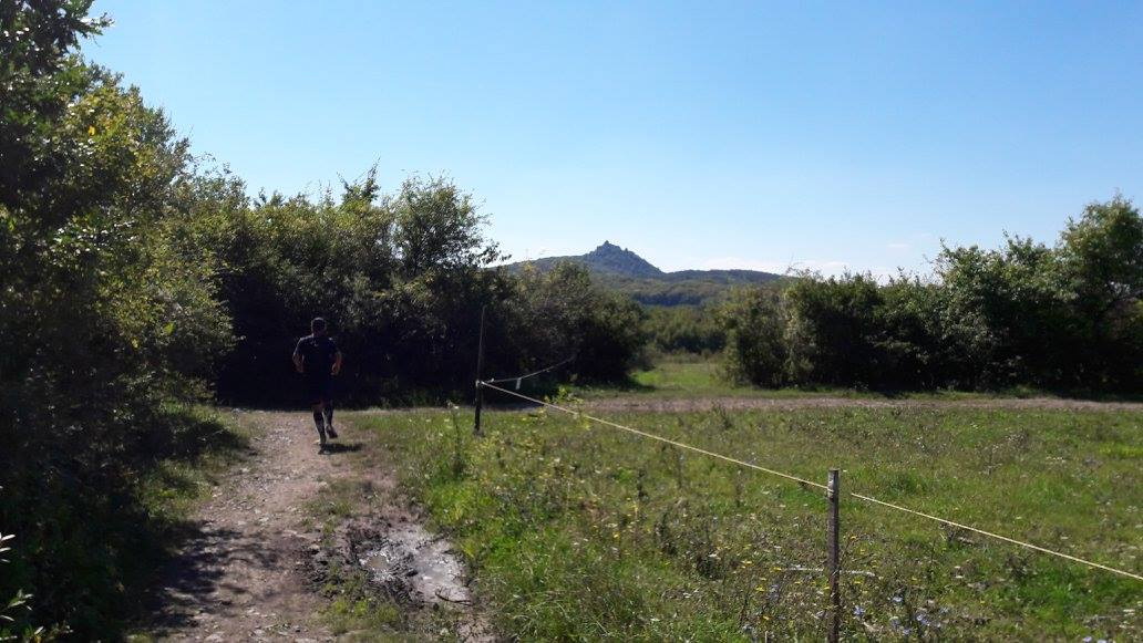 Prebehneme do Maďarska a po miestnych značkách rôznych znamienok vybiehame na hrad Salgó. Pokocháme sa pohľadom z jeho hornej vežičky, zostup tou istou cestou k telesu bývalej lesnej železnice s parádnym tunelom. Odtiaľ po žltej značke zbeh do Somoskoújfalu, po asfaltke cez celú dedinu smer hranica. V poľudňajšej páľave bežíme až do Šiatorskej Bukovinky, do miestnej reštiky. Dávame vývar, radler, dopĺňame vodu, slnko je neúprosné. Sedíme asi pol hodiny, potom sa vraciame znova na hranicu a po žltej značke, z ktorej sa po chvíli odpojíme a krátkym neznačeným úsekom prídeme na červenú, do stúpania na Karanč. Najvyšší bod dáva zabrať hlavne svojou vrcholovou časťou, kde sklon znova mieri nad 40. Ešte pred tým sa zastavujeme pri Margetinom prameni. Začínam pociťovať dehydratáciu. Od reštiky potiaľto, asi 6 km, som vypil takmer liter vody a vôbec to nestačí. Rýchle vypijem ďalší priamo z prameňa, naberám vodu do flašiek. Ďalej to bude ťažké. Čaká nás asi 25 km k najbližšej vode, terénom, kadiaľ nikto za nás väčšinou nešiel. Mal som prejdenú iba malú časť, o ktorej som vedel, že je to riadna pilka. Najvyšší kopec má síce iba 390 m.n.m., ale neustále klesanie a stúpanie vie človeka riadne morálne zničiť. Na celý úsek mám liter vody.