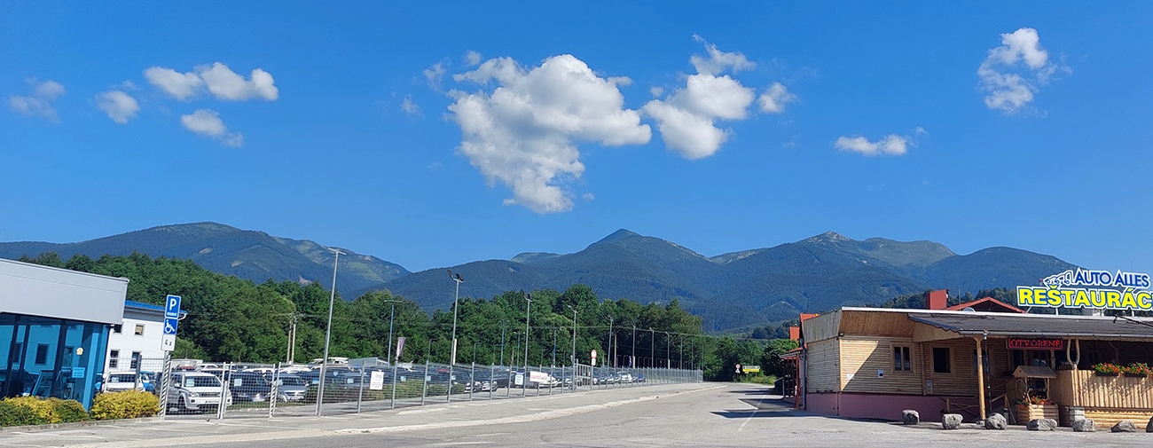 No dosť bolo kecov, ideme na to: pekne od hlavnej transslovenskej cesty 1/18, ktorú na začiatku stúpania v Trusalovej (známa reštika a autobazár, veeeeľké parkovisko) ešte dlho nenahradí diaľnica. Cieľ je priamo vpredu a samozrejme poriadne vysoko: