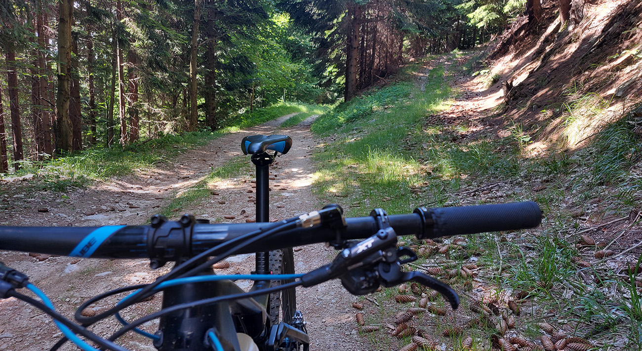 Na záver musím len upozorniť, že ani v zjazde si tu človek veľmi nevydýchne. Začiatok je síce fajn aj s tými výhľadmi, ale nižšie v lese ten slnečný „stroboskop“ hnusne maskuje kamene, takže oči z cesty a rajdy z rúk netreba púšťať ani na sekundu.