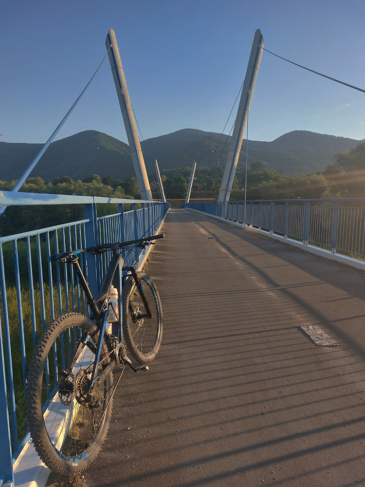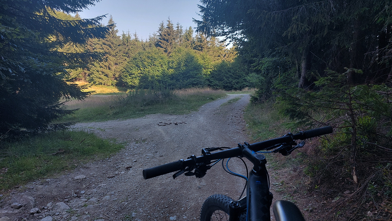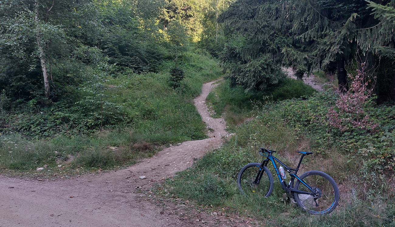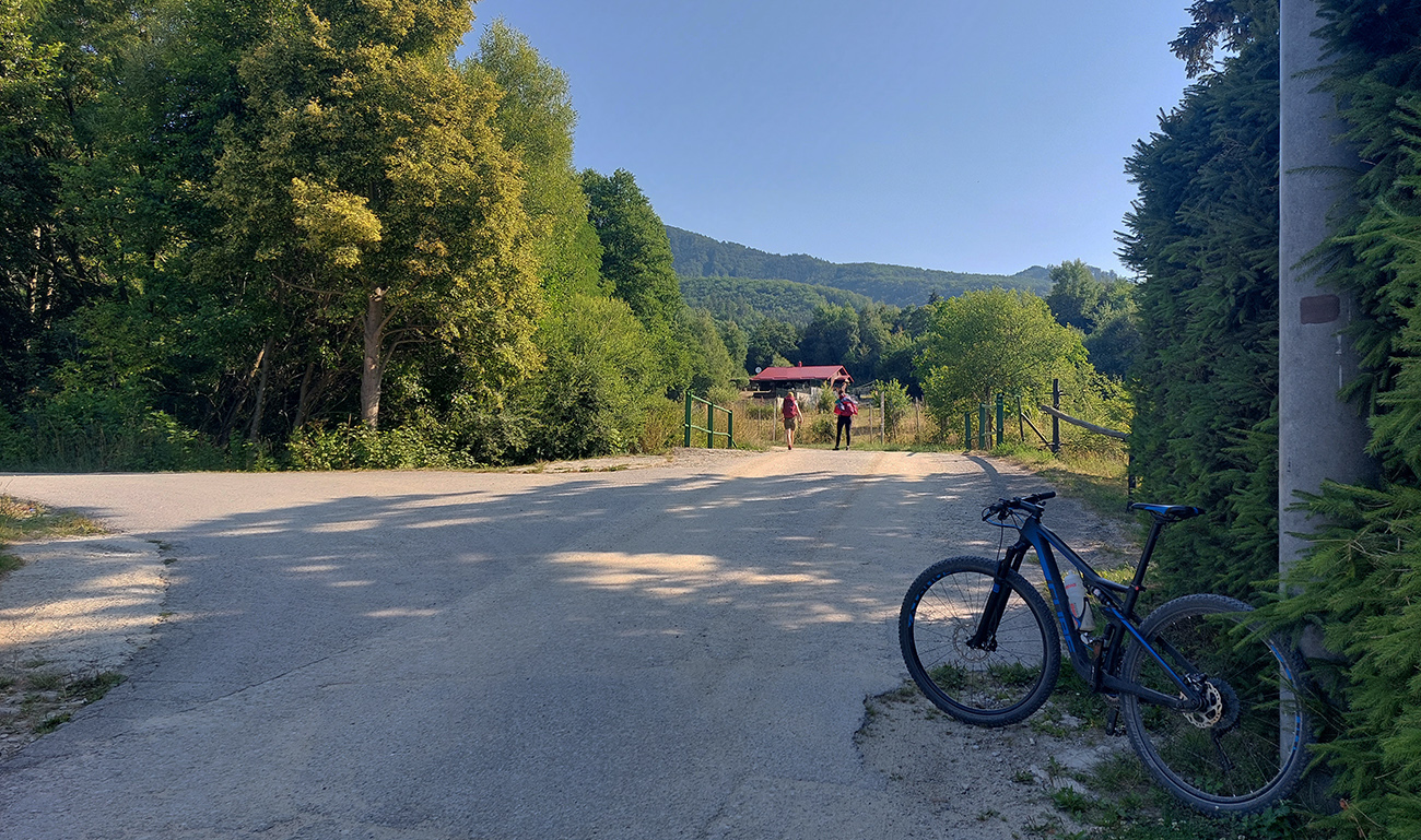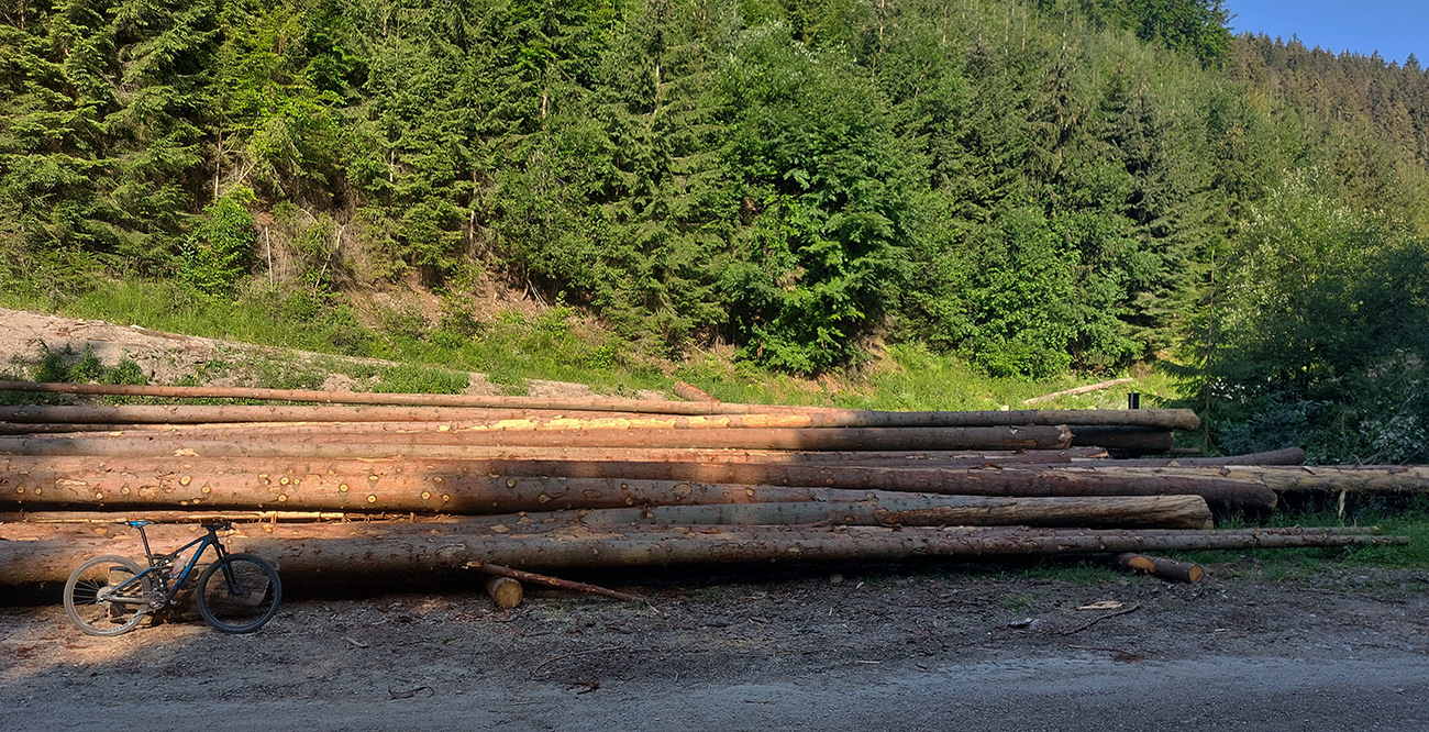 Výjazd na bajku „na Maguru“ je z tých troch najkratší a asi aj najpríjemnejší – podľa Stravy 11,5 km a 730 výškových, ale najmä príjemné škvrčanie relatívne rovnej šotoliny pod kolesami po celý čas. Cesta väčšinou suchá, aj nedlho po daždi, to sa skôr prášiť bude (ako na jednej fotke výborne vidno). Takmer celý čas vedie v príjemnom tieni, aj keď cez početné rúbaniská sú tu otvory na juh, do kotliny. Sklon ľudský, len „cieľová rovinka“ nad sedlom Príslop je na niekoľkých miestach strmšia a aj v kombinácii s väčšími kameňmi pod kolesami môže slabšieho technika trochu vyškoliť. No a posledné metre na terasu pred chatou sú najstrmšie a najhrboľatejšie z celej trasy, ale tam sa vždy veľa ľudí prizerá, tam sa už jednoducho treba hecnúť a nedať sa zahanbiť :-)