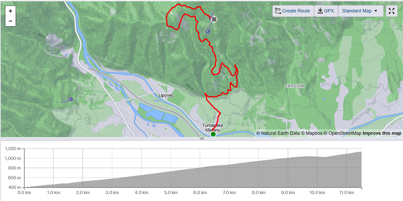 Podobne ako pod Chlebom, aj tu je na turistických mapách (mapy.cz aj mapy.dennikn.sk) už cyklotrasa z Turčianskych Kľačian zaznačená, no v teréne ešte nie. Zablúdiť sa ale nedá, prinajhoršom treba sledovať stopy po bajkoch, je ich tu vždy dosť. Viac hádam povie fotogaléria a animácia Relive, aj keď pokus s fotkami (ísť kvôli záznamu súvislo smerom hore a fotiť potom pri jazde dolu) veľmi nevyšiel :-) Pre tých úplne bojazlivých alebo neznalých je tu hore gpx súbor na stiahnutie. Na záver už len upozornenie: do zákrut opatrne – jazdia tu aj autá, a poriadne veľké :-)