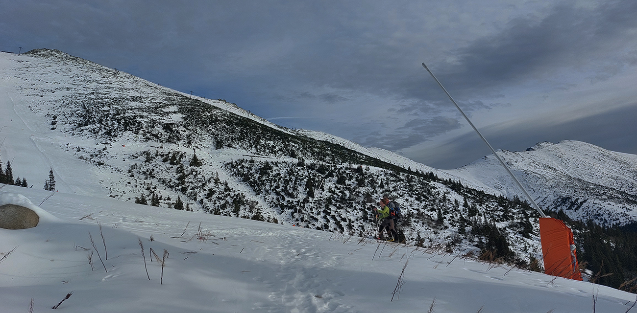 Len o kúsok vyššie „od úpätia“ sa vďaka rúbaniskám a priesekom zjazdoviek začali otvárať tie notoricky známe panoramatické výhľady – žiaľ teraz najmä na okolitú snehovú biedu. Dominovali tmavé farby a v diaľke na juhu Klenovský Vepor. Podklad mimo pisty sa zdal byť pevný, ale kto si trúfal vyskočiť z lyží, hneď bol po kolená zapadnutý do mokroty.