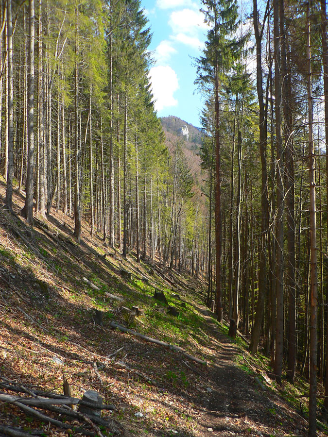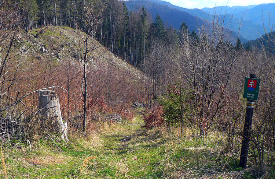 Tá nič moc - zas asfalt, ale aj holoruby, kopy dreva a široké blatnaté dno. Našťastie za zrubom, ktorý pamätá vraj ešte SNP, to začína byť úplne iné: užšie, lesnatejšie, bralnatejšie, čím vyššie tým viac. Až na výnimku v podobe zbúraniska bývalého pionierskeho tábora v ústí Rožkovej doliny, do ktorej značka (už zas modrá) odbočuje. Až potiaľto to bolo vhodné aj na bajk, odteraz už len peši.