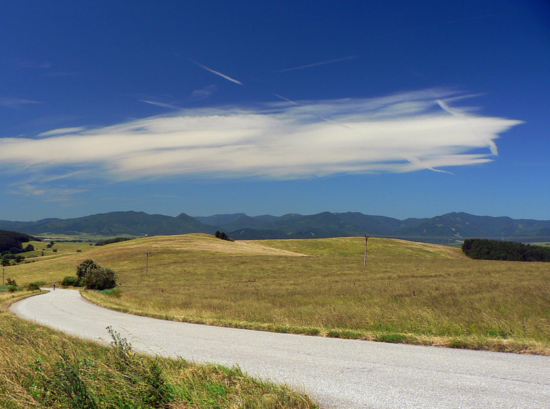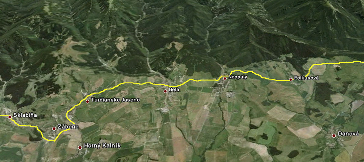 Jedna pekná a hlavne málo frekventovaná cesta vedie východným okrajom Turčianskej kotliny, podhorím Veľkej Fatry. Dostala meno podľa svojej dôležitosti pri zásobovaní partizánov, aj keď už v stredoveku tadiaľto vozili meď z Bystrice do Krakova. Na juhovýchode kotliny sa odpája od hlavnej cesty Banská Bystrica – Martin pod Šturcom (pri ústí Žarnovickej doliny), na severe sa napája na hlavnú cestu z Martina do Ružomberka pri Ratkove. Takto má asi 52km a pretože hlavná cesta vedie stredom kotliny, je to tichá, ale preparádna asfaltka. To aby tu bolo čosi aj pre tých, ktorí radšej tenšie kolesá – navyše v jej severnej časti medzi Sklabinským Podzámkom a Krpeľanmi pribudli nedávno kilometre nového asfaltu, takže tam je hladká ako detská prdelka, hoci zároveň aj najužšia. Hlavne cez víkendy sa to na nej cyklistami len tak hemží - najviac okolo Turčianskej Štiavničky a Gaderskej doliny. Cesta je podstatnou časťou červenej „turčianskej cyklomagistrály“ (55km), ktorej profil je v galérii – aj s odbočkami do obľúbených veľkofatranských dolín. Tie sú ale svojim povrchom vyhradené minimálne pre krosové bicykle. Pre „žiletkárov“ je od vlani čerešničkou na torte nový čierny koberec na najsevernejšej odbočke z tejto cesty - z Nolčova do Veľkej doliny. Je to asi 6-kilometrový výživný kopček v tieni úzkej a strmej doliny, popri potoku, ideálny na tréning kopcov v sparnom lete. Len či po lesákoch už nie je na ceste viac hliny ako asfaltu?