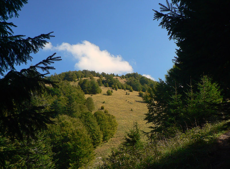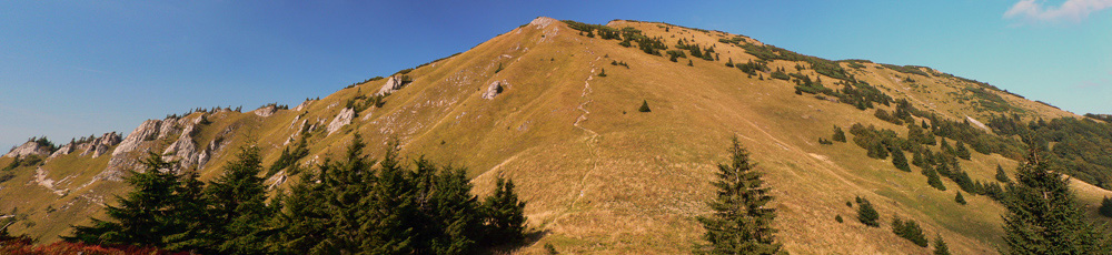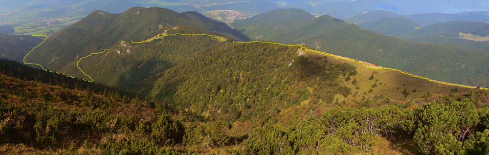 Posledný úsek výstupu na hrebeň vedie striedavo lesom a zarastajúcimi lúkami, so stále lepšími výhľadmi na vrcholové časti Krivánskej Fatry. Pribúda kosodrevina, tesne pod sedlom chodník traverzuje ponad záver Belianskej doliny. Kysucká vrchovina na severe je ako na dlani, tak isto bočné hrebene, ktoré vybiehajú spod Kriváňov na sever – vidno ich vľavo vpredu.