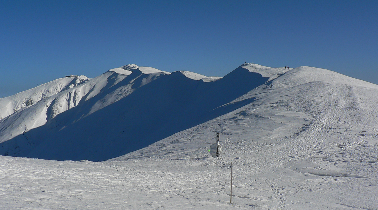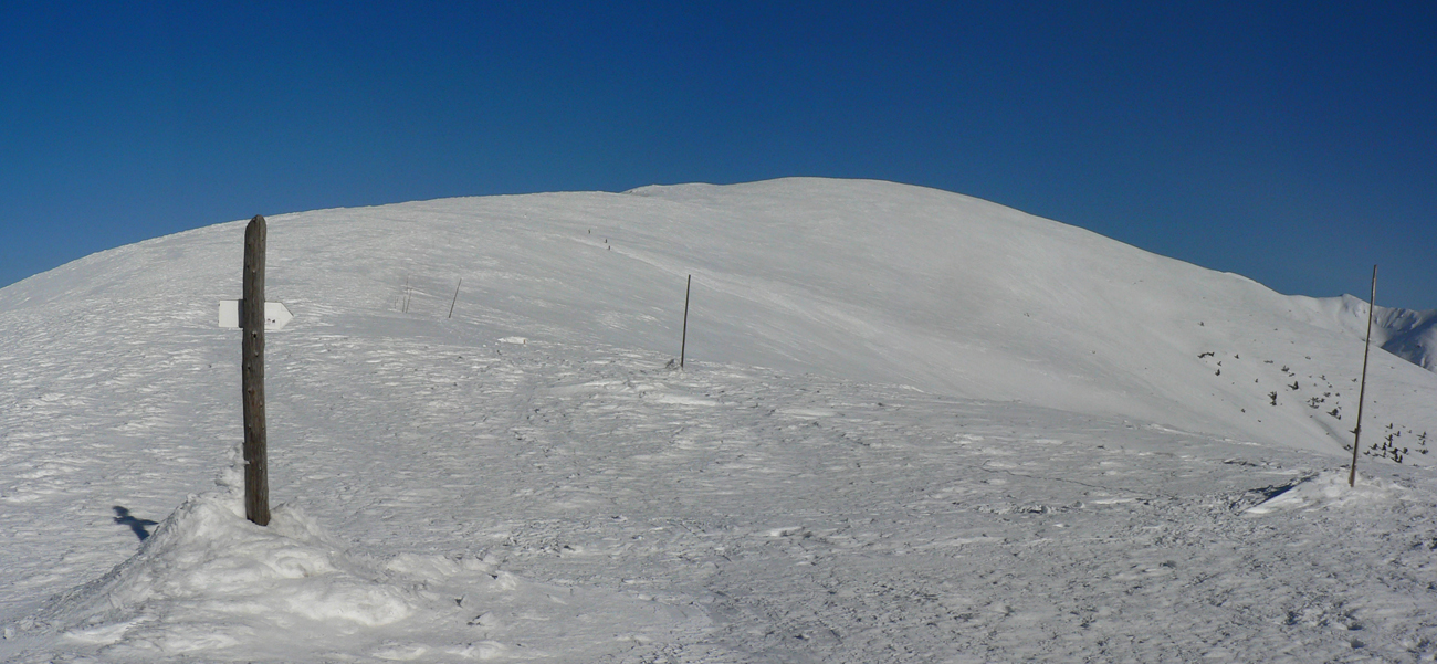 V polovici februára keď príde jar, to dúfam že nie je ešte posledné slovo, čo zima povedala. Ale dole sa teploty šplhajú nad desinu, tak treba vyššie vyliezť, som si povedal. Ale zas nie príliš, aby ten betón na slnku cez deň trochu povolil. Na to je tento kus hrebeňa priam ideálny, lebo chodník je otočený čiastočne na juh. A na Chopku hlásili cez deň +2 a takmer bezvetrie.