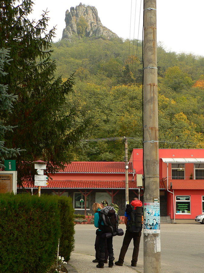 Onedlho sa už vynárame z lesa na lúky a o dve chvíle z lúk do dediny: Hajnáčke dominuje ďalší hrad na sopke. Ale najskôr krčma, podporiť „miestne podnikanie pre úspešný regionálny rozvoj marginálnych oblastí“, ako stojí napísané na ohviezdičkovanej tabuli. Hej, z nás tu toho narozvíjajú! Ale dedina je(aj vďaka tým europeniazom) pekná, upravená, po kostole bude v krčme isto väčšia tržba.