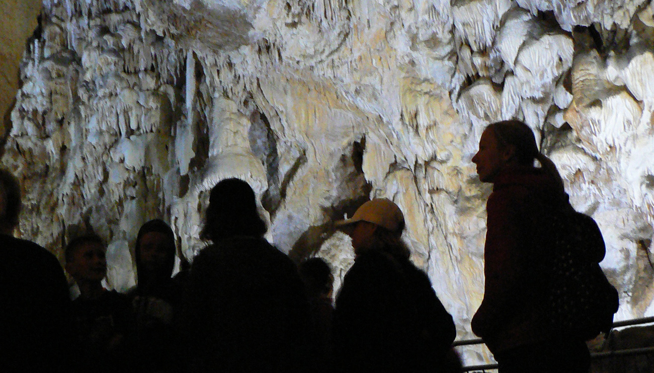 Už vstupný priestor je majestátny. Napriek tomu ho domáci nazvali familiárne Izbica. Potom vstupná (objaviteľská) chodba, ktorá je tiež pekná – žiadny účelový betónový tunel. A od jej konca to príde: striedanie chodieb a dómov, detailov a scenérií. Asi tak na hodinu, počas ktorej návštevník prejde približne tretinu známych priestorov jaskyne. To už si každý zažije sám, to tu škoda rozpisovať. Aj fotiť sa tu samozrejme môže, za poplatok. Ale bez statívu. Takže výsledok iba dokumentačný, veď je to v galérii vidieť :-)