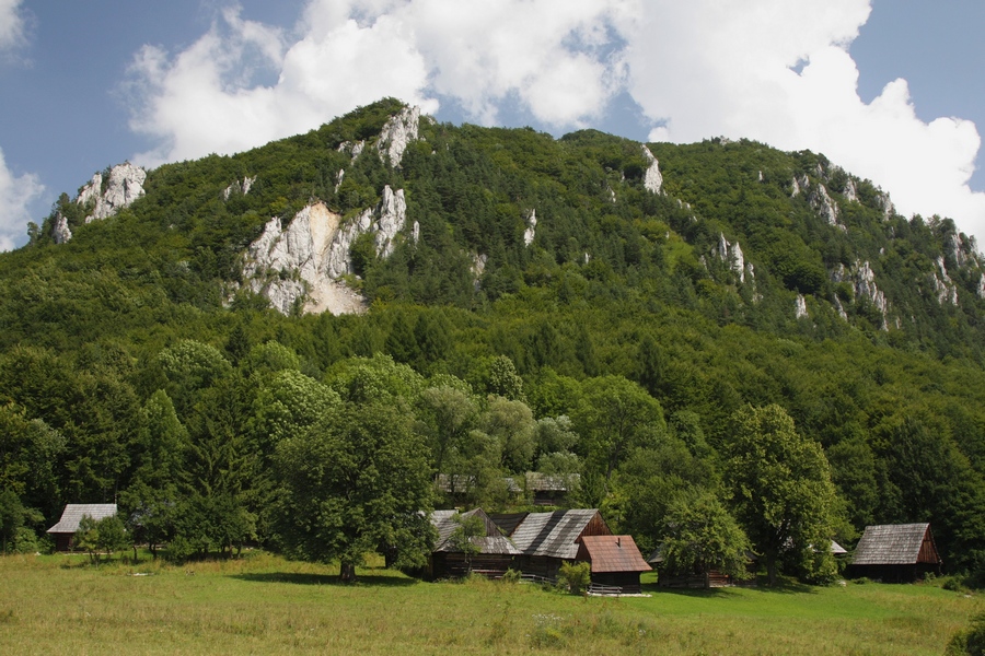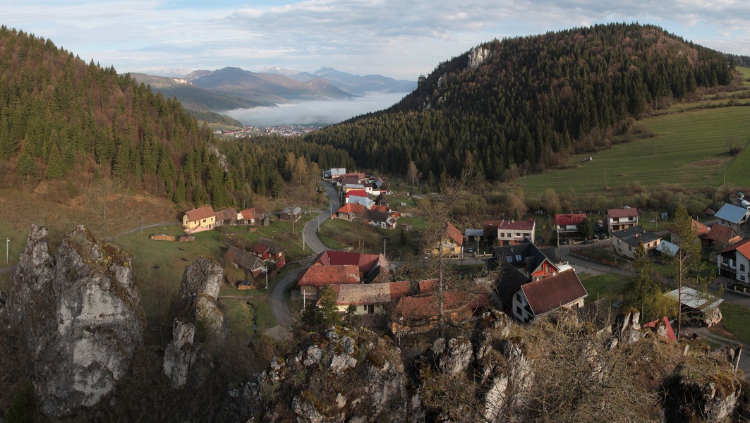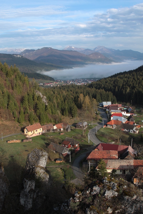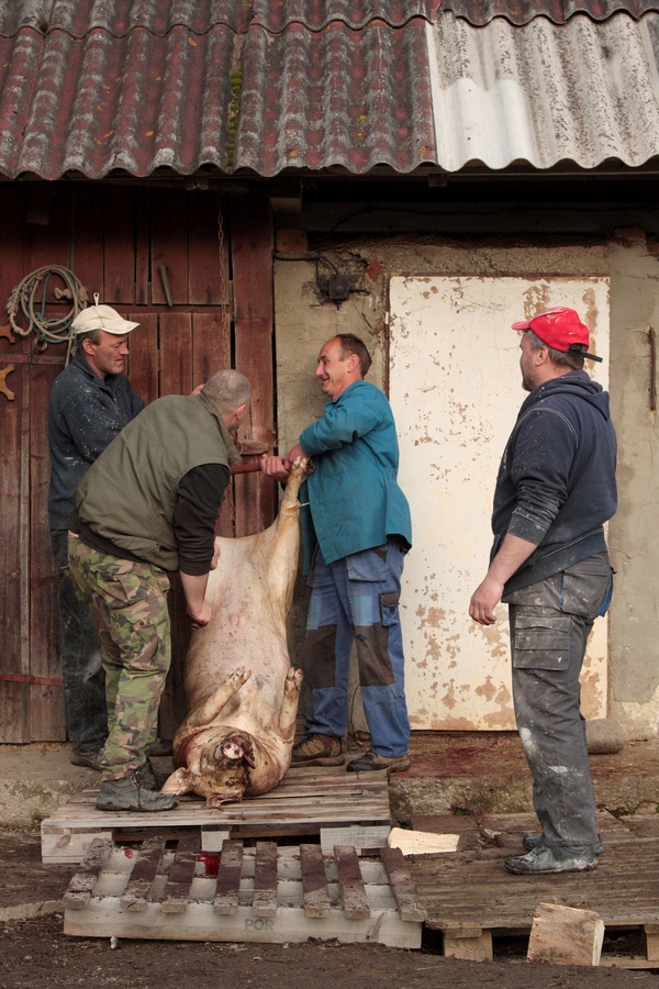 Ranná Studničná sa len pomaly prebúdza do nového dňa. Len v jednom dvore priamo pod bralom je rušno. Schyľuje sa k zabíjačke. Ani neviem ako, a už ma zapájajú do činnosti. Pomáham naporcovať teplú krv do sáčkov, ešte nejaké to foto na pamiatku a poberám sa ďalej. Prieskum skalného brala nemôžem vynechať, je z neho luxusný výhľad aj na môj dnešný cieľ. Zo Studničnej asfaltkou preťapkám do Komjatnej, kde sa napájam na pomerne čerstvú zelenú značku na Hrdoš.