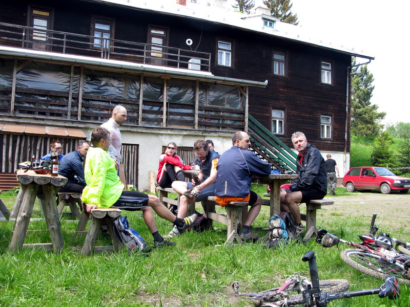 Nechýbalo dokonca ani posedenie na chate pod Čergovom, kde mali medzi horalkami a čipsami na predaj aj duše na bicykel. Samozrejme, zase sme stretli aj motorkárov ako sa preorávali blatom, hlavne v okolí chaty.