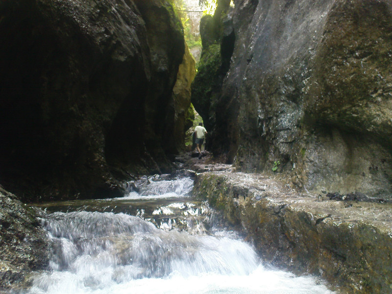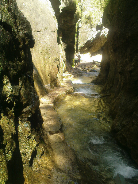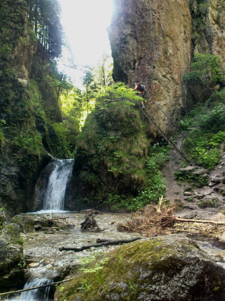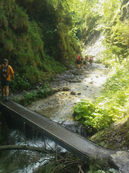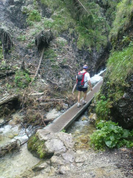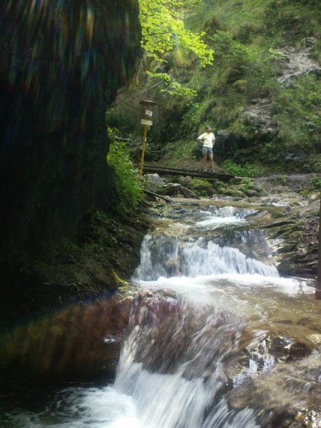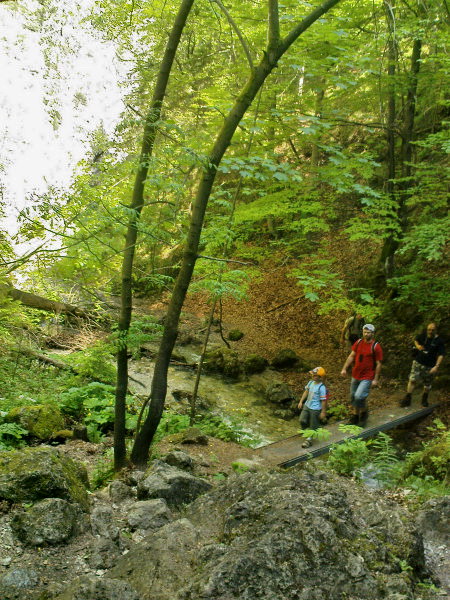 Mostík, lesná cesta, zrazu skalky. Celá dolina sa zrazu pritisne tesne na chodník, voda si vymyla svoj chodník, ten turistický vybetónovali dobré duše. Aj mostíky a ich upevnenia sem neprišli len tak, ale na chrbte človeka. Kaskády, meandre, vodopádiky, a rebríky ponad ne. Zaujímavé a nenáročné, deti vítané. Ale fakt treba prísť skôr, inak rátajte so zdržaním na mostíkoch a rebríkoch, sú to jednosmerky.V roku 2009 boli mostíky a rebríky vymenené.