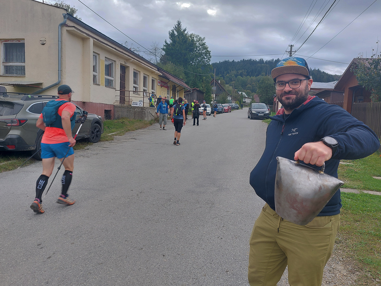 No ale pome priamo do akcie. Ráno správne hornokysucky chladné, pod 10 stupňov, a ako myši sa pred zimou tlačia do chalupy, aj tu sa dav natlačil do kulturáku. Tam ešte fičala prezentácia a odovzdávala sa batožina aj dropbagy, tak výhovorky sa našli. Až asi 10 minút pred siedmou musel El Prezidente Belo poriadne zahvízdať a vyhnať to všetko von. Lebo z pódia sa chcela okrem hlavného páchateľa SUT Rada Haracha prihovoriť tuším aj miestna podrichtárka. Len ju asi moc ľudí nepočúvalo, ktovie či je aj na také zvyknutá :-) Hlavnou páchateľkou J100 je ale Ľubka Fenclová, na to netreba zabúdať pri vďakyvzdávaní -aj keď ona sa vždy tvári popri Náčelníkovi tak nenápadne, že? Všetko sa inak odohrávalo aj pod prísnym dozorom pána Petra Jilemnického (inak v cieli pre zmenu na mravnosť dozeral P. O. Hviezdoslav):