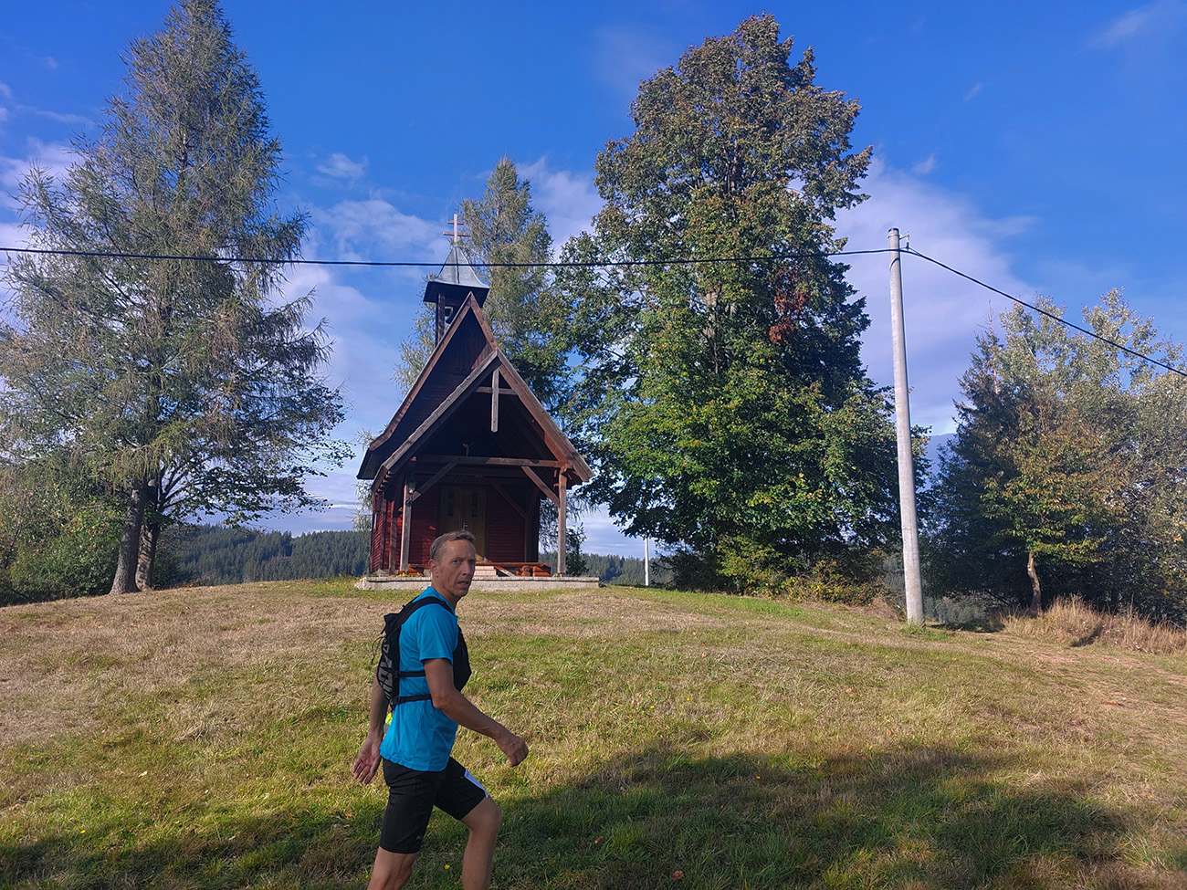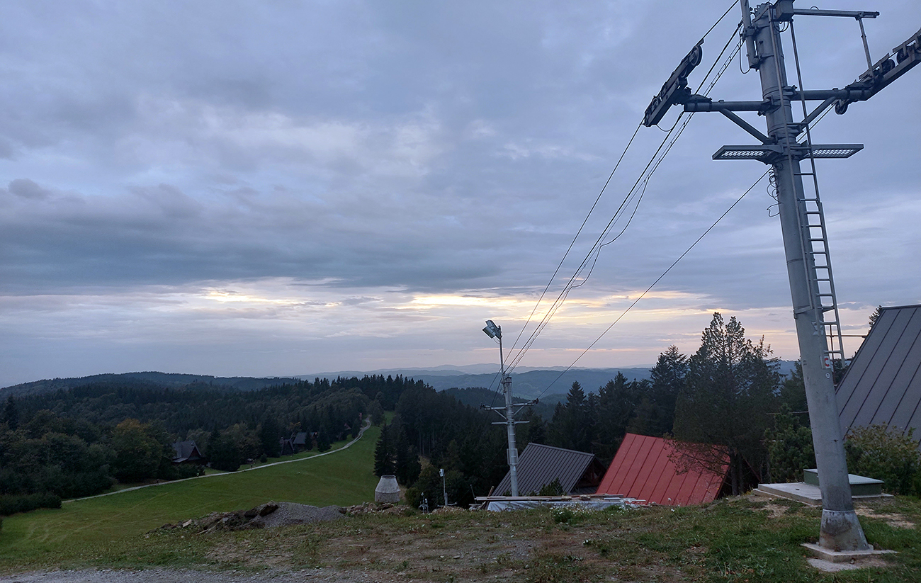 Ostatní fučali ďalej, smer K6 Portáš – do jedného z najpríjemnejších úsekov trasy. Krajinárskymi kvalitami aj behateľným terénom, a prevažne z kopca. Slnko ak dopoludnia sem – tam aj vykuklo spoza záclon, popoludní už sa hore zaťahovali aj hustejšie závesy a párkrát aj pokropilo, ale to len také strašenie bolo, aj cesty ostali suché. Aj keď na severnom obzore chvíľu stála taká nepríjemne sa tváriaca šedivá stena – ale posúvala sa viac na východ. Zlatá hodinka sa tento raz nekonala, ale možno niekto vystihol pár sekúnd, keď sa zapadajúce slnko objavilo v medzere mrakov – či?