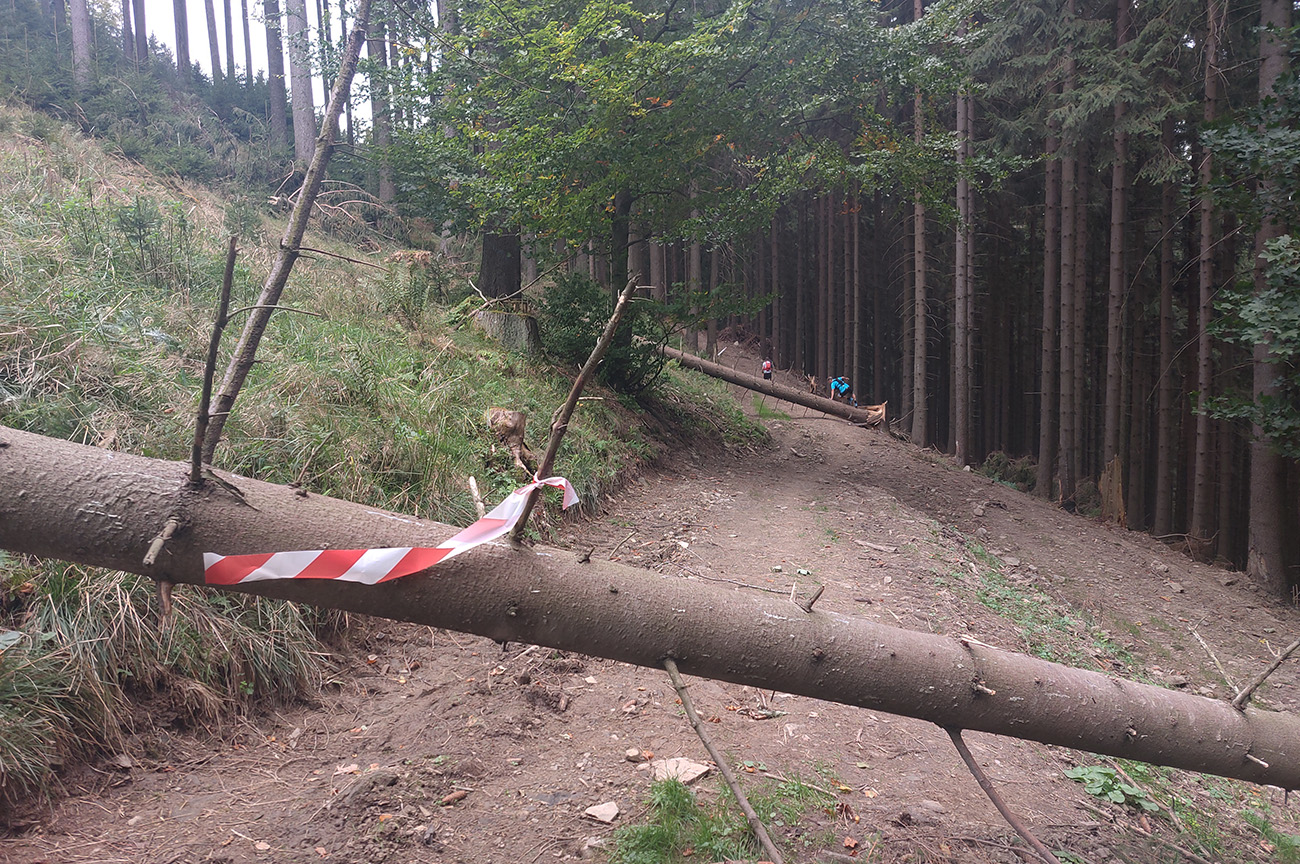Trasa teda ako po minulé roky, len jedna nepodstatná zmena – štart posunutý o námestie vedľa, pred čadčiansky kulturák (kde bola ak prezentácia), takže pribudlo pár stoviek metrov a pár výškových metrov (alebo skôr schodov). Podstatnejšie zmeny boli inde, kde oproti r. 2021 pribudlo výhľadov – lebo žiaľ ubudlo stromov. Najmä v prvej polovici. Poriadne mi to udrelo do očí, lebo vlani mi covid zariadil neúčasť, tak o to väčší rozdiel som teraz vnímal v tom „krajobraze“. No a tie prekážky ako na správnej „stodesine“ – to boli najmä stromy cez cestu, pováľané vetrami. Nie nejako moc, ale tie podliezačky boli potešením pre telá stuhnuté behom, že?