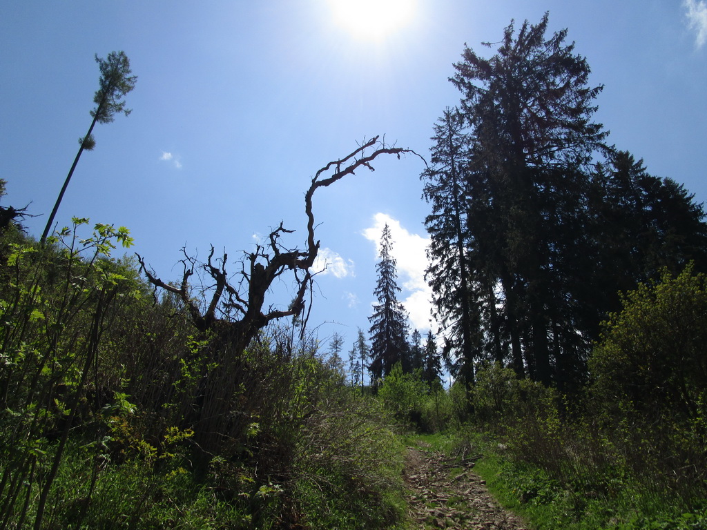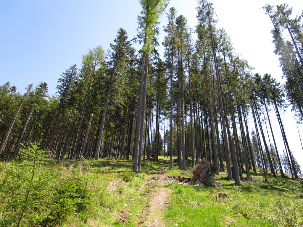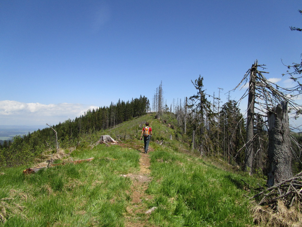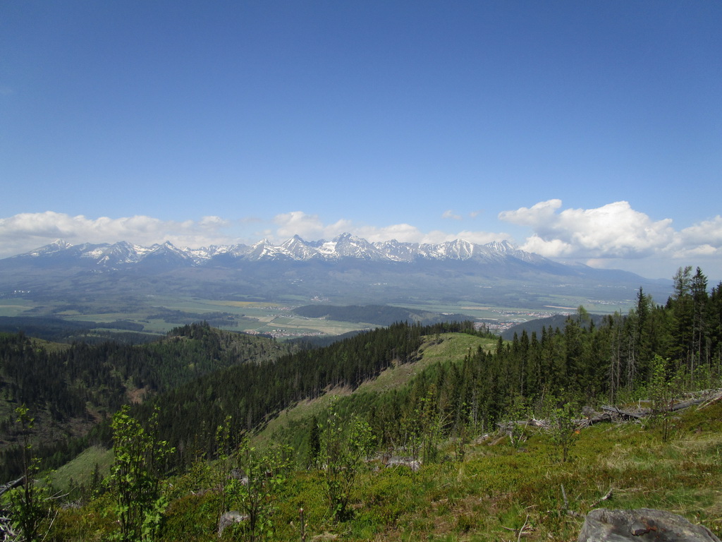 Výstup na vrchol pokračuje strmým priesekom vo zvyšku lesa na vrcholový hrebeň. Už tu sa nám otvorí nádherný výhľad na Tatry. Vysoké aj Nízke. Tie pohľady smerujúce bližšie a nižšie už také nádherné nie sú... ale je potrebné si uvedomiť, že priority tejto oblasti nie sú v turizme (: