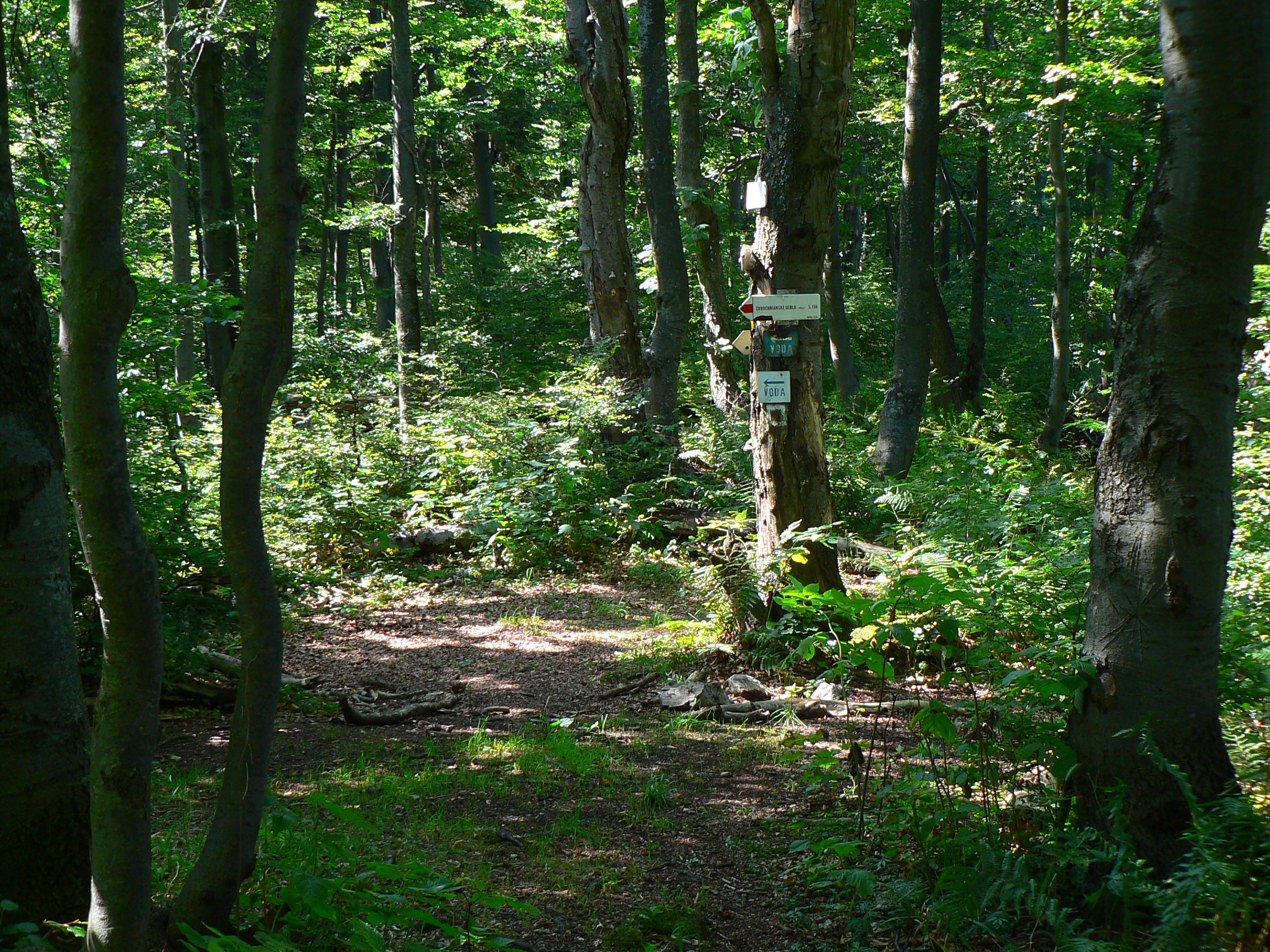 Za výhľadmi na juh (na Veľkú Fatru) treba zbehnúť na lúku pod vrcholový smerovník, tam kde sa stretáva červená so žltou značkou. V strede panorámy je zárez Ľubochnianskej doliny, na horizonte vidieť Ploskú, Čierny kameň aj Rakytov. Na lúke je žľab s vodou a na okraji lesa malé táborisko. Smerom dolu, do civilizácie, sú na výber tri možnosti. Po žltej do Krpelian je to prudko a nezáživne dolu lesom, a po zvážniciach alebo krížom cez ne. Treba sa často vyhýbať traktorom, džípom a vetrieskam :-) Na druhú stranu do Ľubochne po červenej je to ešte prudšie, priamo po spádnici, pod nohami zväčša šuchoce hrubá perina bukového lístia. Najpestrejšie je to do Ľubochnianskeho sedla, miestami aj do kopca treba vybehnúť a aj nejaké lúky a skromné výhľady sú cestou.