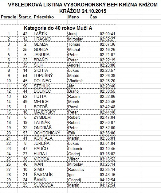 V cieli potom čakalo na dobiehajúcich občerstvenie – jednohubky, pivo, kapustnica, kofola. Nechýbala živá kapela. Vyhodnotenie bolo po jednotlivých kategóriách. Celkovo štartovalo 55 účastníkov. Najrýchlejší čas atakoval hranicu 2 hodín. Po vyhlásení nasledovala tradičná tombola, v ktorej vyhral takmer každý.
