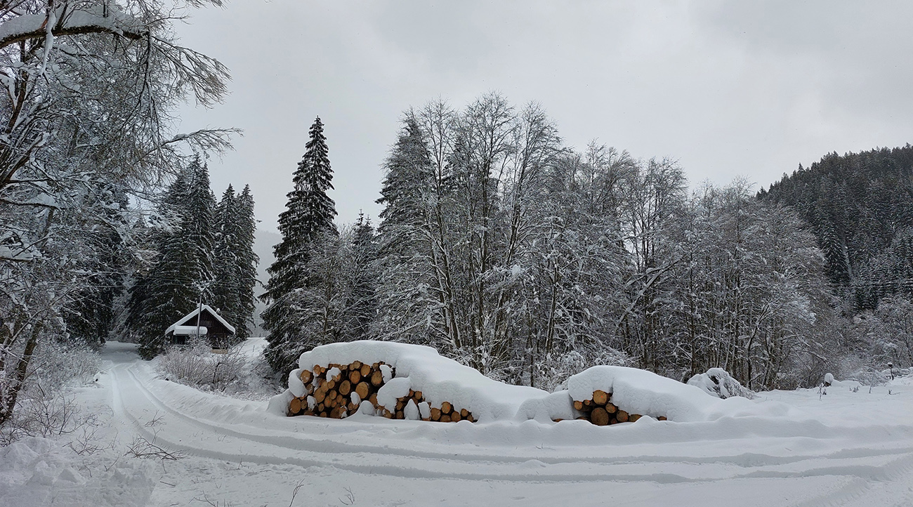 A just si ešte nejakú stopu prerazím! Tak oproti sanatóriu ďalšia bočná dolina, v lete s bajkpozitívnou zvážnicou. Teraz pusto, hlboko, len na povrchu vetrom nalámaných konárov, listov a bukvíc bohato. A zas tie cik – cak jelenie chodníčky, od kríka ku kríku. Najlepšie sú zjavne tie snehom obťažkané a až k zemi sklonené.