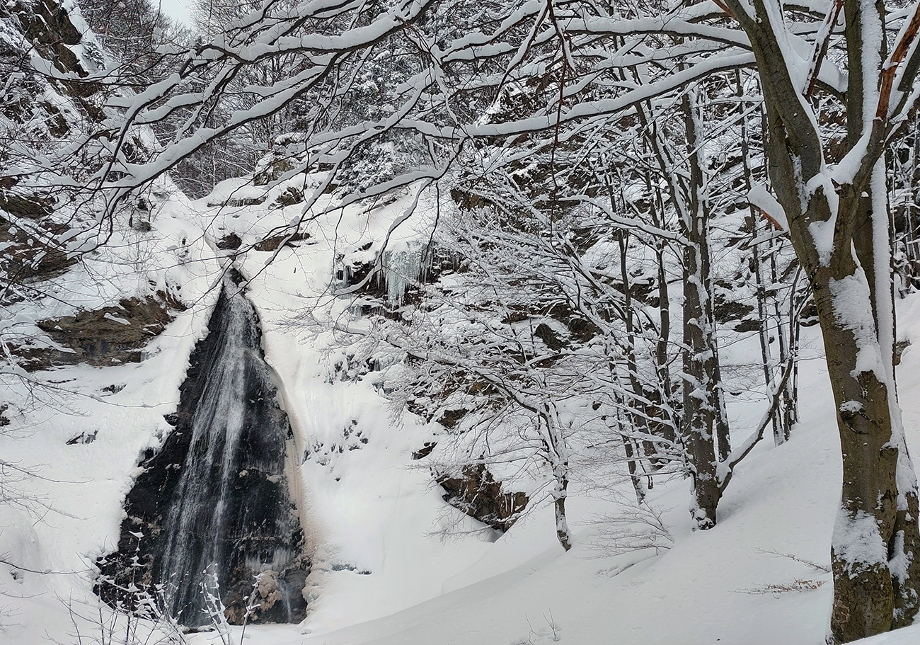 No to už nebol ďaleko smerovník s odbočkou hore pod Chleb. Teraz by to bola čistá sebevražda. Ale vodopád už za rohom, tak už len cez jeden mostík, zapadaný po zábradlie, a už som vychutnával pohľady. Krásny je aj takto v zime, zvlášť v takejto s čerstvým, bielym náterom.