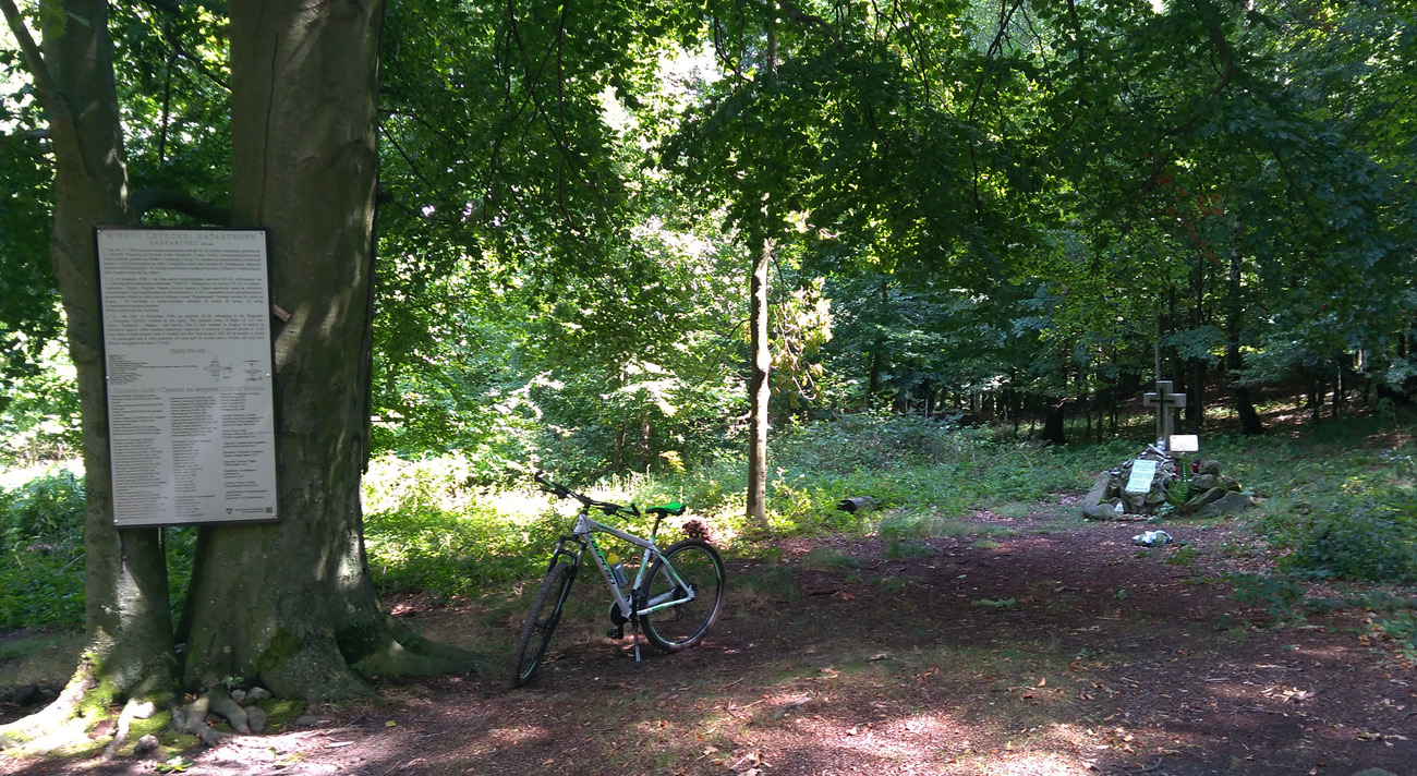 Na Bielom kríži pekná lúčka, je sa kde zložiť. Na konci bufet, tankujem kofolu a do zásoby jednu premiérsku malinovku, viď fotka. No veď uvidím, či bude silná alebo iba s úsmevom... Popozerám mapy, čo kde sa tu ešte dačo dá, som tu prvý raz. Upúta ma príbeh havárie lietadla, tak reku dobre, je to blízko, len sa treba správne naštelovať na smer Vajnory. Zjazd je pekný, aj pekne šutrový, nasekané občas až priostro (dávam pozor na moje polosliky). Odbočku k miestu havárie prešusujem, značená je veľmi biedne, aj to z opačného smeru. Takže si dám mierny šlapák ešte raz, ale nevadí. Po chvíľke ticha a oddychu ide sa ďalej. Už iba smerom dole cez les, po šotoline, prebehnem cez záhradkové kolónie a vyjdem pri BAZ križovatke.