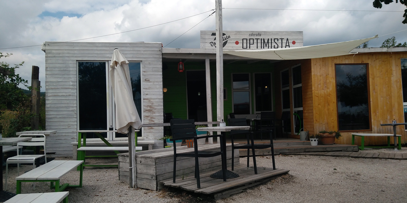 Hneď vpravo je cyklo bufet-krčma, s pekným menom Optimista, a aj s pekným prostredím. Aj deti si nájdu svoje, aj posedieť je kde, aj bike sa tu dá opraviť. Druhá kofola a pokračujem. Cyklochodníky v Bratislave sa stále rozvíjajú, a tak skúšam nasledovať, čo je načarbané po zemi. Nie je to dokonalé, ale celkom fajn sa dá prejsť cez Raču až do centra mesta (Račianske mýto). Trasované je to paralelne s radiálou električiek, takže celkom dobre mimo rušného prostredia. Až od Zváračáku je to už bieda prostredím aj povrchom chodníka.
