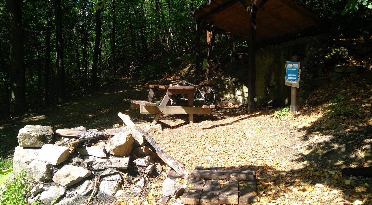 Od Janovho článku som mal ešte isté nejasnosti, tak som ich išiel preveriť priamo v teréne. Smerom na sever, odbočka doľava popod lanovku a pohodlným lesným chodníkom dole kopcom. Zopár zákrut a mostík ohlasuje bikepark a o minútku aj prístrešok s ohniskom a studničkou. Fajná voda, dobre ju chladia. Rozbory hygieniczne robené v apríli 2018 s výsledkom pitná. Dobre padne ochladiť hlavu a zmyť mastnotu z rúk. Pozerám na tabuľu: cvičná slalomová lúka. Tak to je to miesto z Janovho článku. Sklon severoseverozápad... Tak tam sneh vytrimal, priesek je úzky, ideálne spravené. Nuž tak na zimu je príprava už v lete. Aj si spomínam, že som to už pešo traverzoval pred rokmi na jeseň, lenže o pár desiatok metrov povyše. Skladačka je teda kompletná Jano, ďalšie správy odtiaľ pošlem v zime, ak budú podmienky.