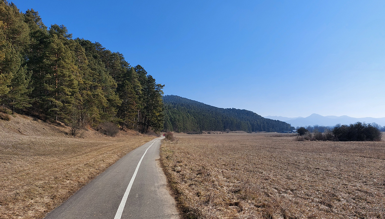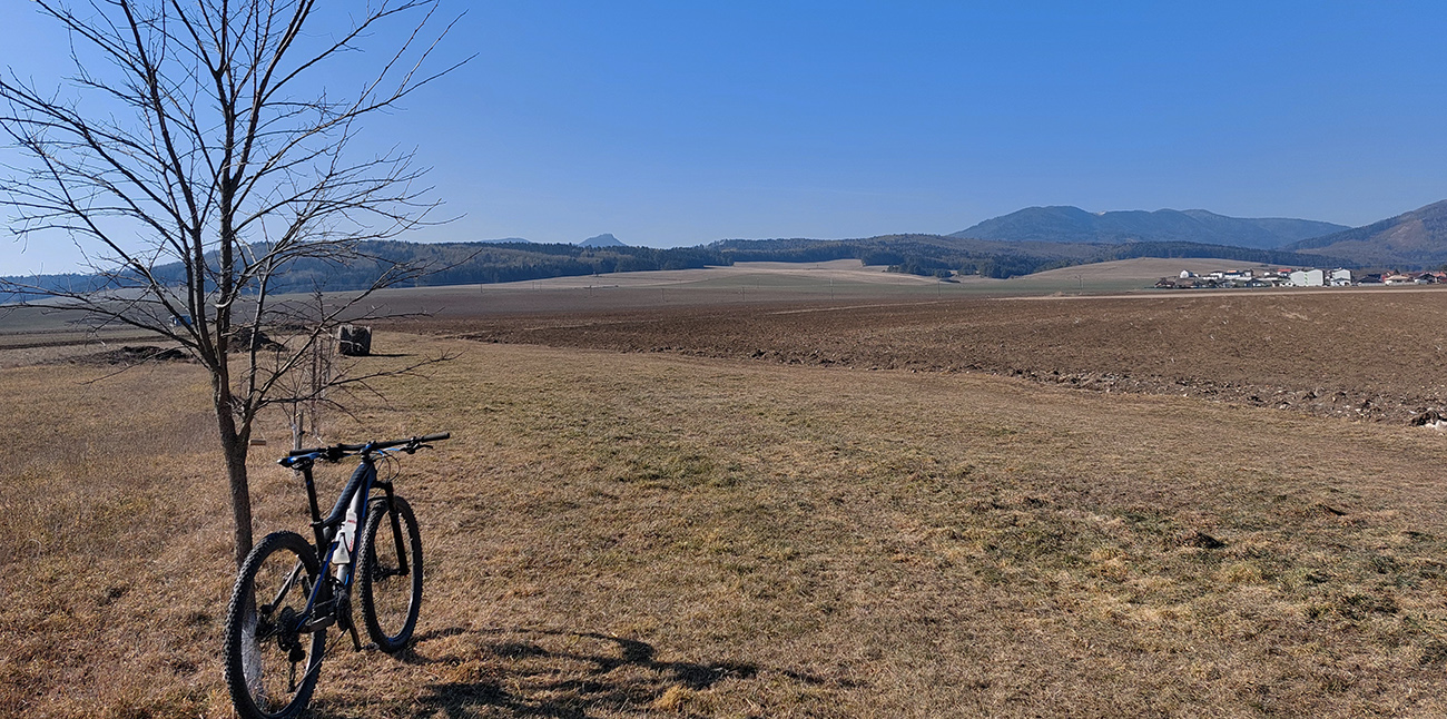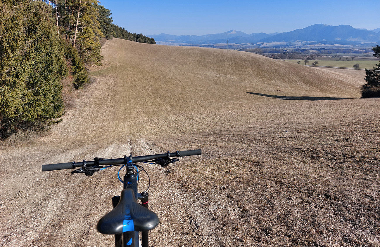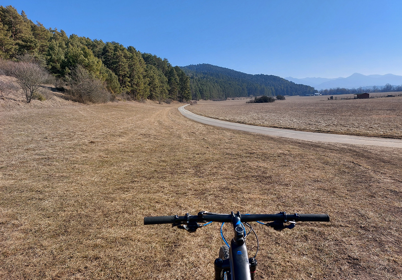 Nevadilo, ďalej popod Les, ponad Ležiachov, tiež pekné, jazditeľné prostredie, a s výhľadmi na Veľkú aj Krivánsku Fatru. A konečne som sa otáčal na sever, čiže slnko v chrbte. Vietor tiež, no ten som ocenil až neskôr.