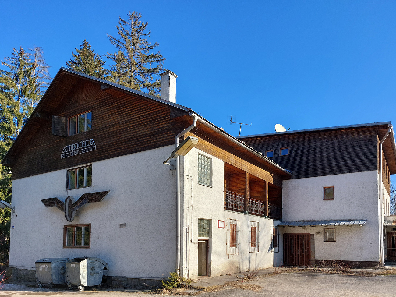 Von z lesa naposledy, popri upadajúcej chate Storočnica. Ktovie, či ešte vstane z mŕtvych? A už len asfalt dole do Vrútok, nech sú dezény pekne čisté, na zaparkovanie doma v izbe. Aj keď vlastne čisté boli celý čas, nebolo čím ich zaniesť. Proste polovica februára a vrchol zimy, na aký si asi budeme musieť zvykať. Inak to bolo celkom fajné pojazdenie.