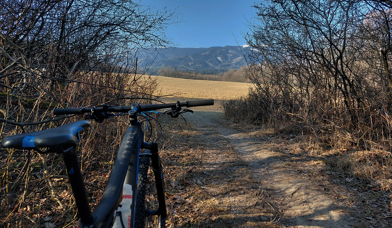 Potom nazad až na Bystričku skoro rovnaká trasa, s pár malými improvizáciami, či nenájdem niečo lepšie pod kolesá, alebo aspoň iné. Ale najmä v tej cestami neprepojenej časti pod Trebostovom (Medziháje) to bol len iný druh jemne hrboľatého poľa s nejakými stopami po autách. Takto za sucha samozrejme v pohode.