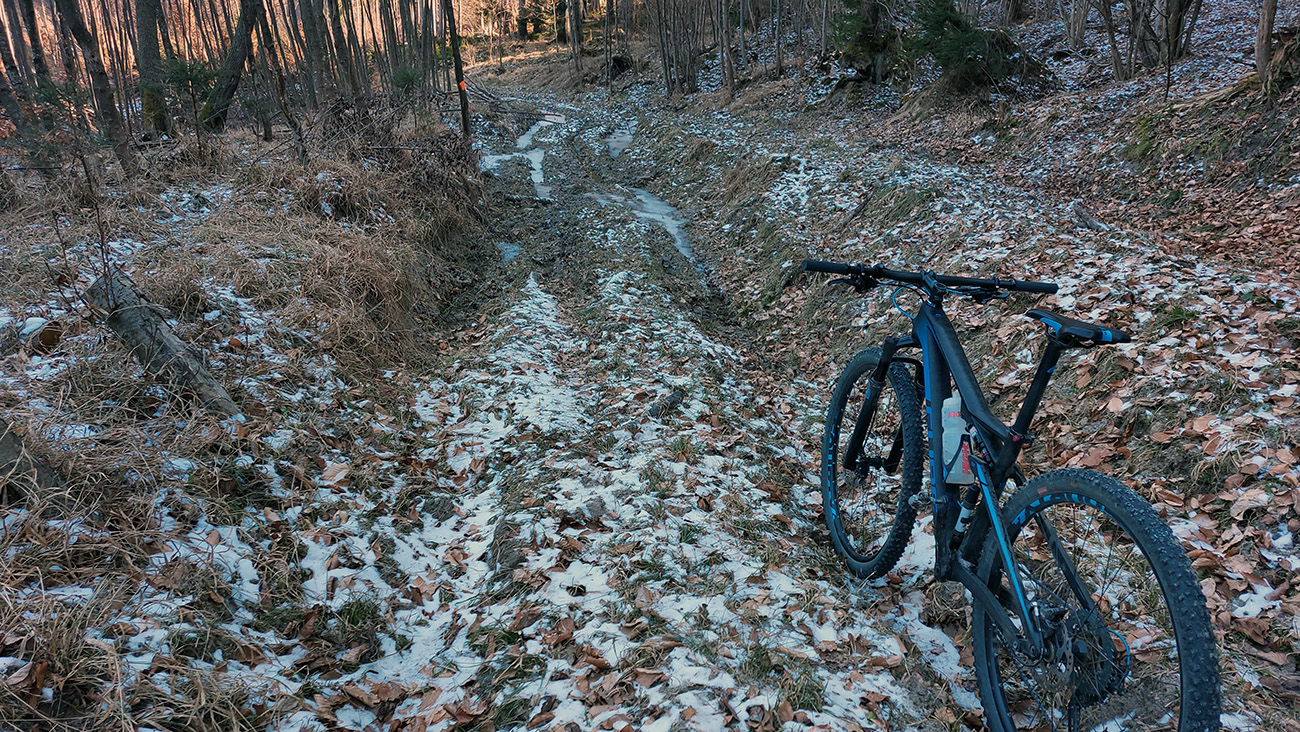 Krátky prejazd pomedzi domy na Podháji a už čakal tankodrom, aj so svojim povrchom á la „Paríž - Roubaix“. Potom aj asfalty a betóny, z holých krovín ešte viac trčali kopy odpadkov, no romantika jak sviňa! Ale ciest na výber, že som až netrafil presne tam, kam som chcel.