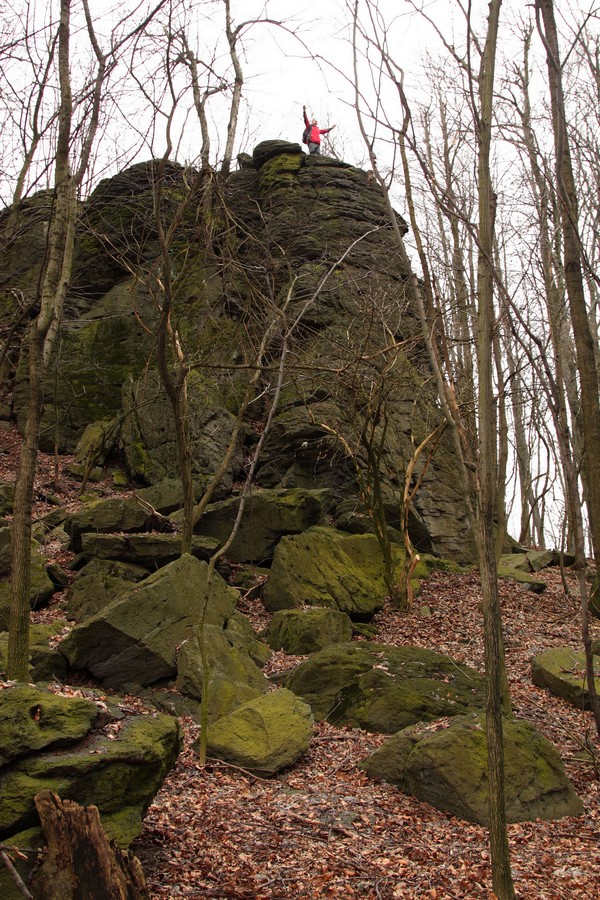 Z kaňonu sme sa po pármetrovom klesaní dostali k hrobom dvoch českých vojakov. Odtiaľ už pomedzi stromy vykukoval náprotivný čadičový vrchol Kis Szilvás-kő (615 mnm). Výhľad z neho nie je žiadny, no aj tu sme objavili skalné bludiská, diery a pukliny.