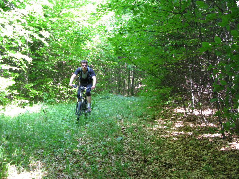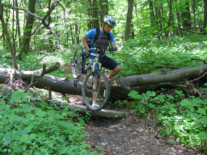 Budeme totiž tlačiť bajky cca 400 v.m. na Veľkú Poľanu po žltej značke. Strmý chodník a sem tam strom na ceste. Nestretávame nikoho, ideme málo frekventovanou spojkou. Pod Veľkou Poľanou nás čaká ešte orientačná vložka, keď podľa mapy po cestách necestách si to namierime rovno na poľanu.