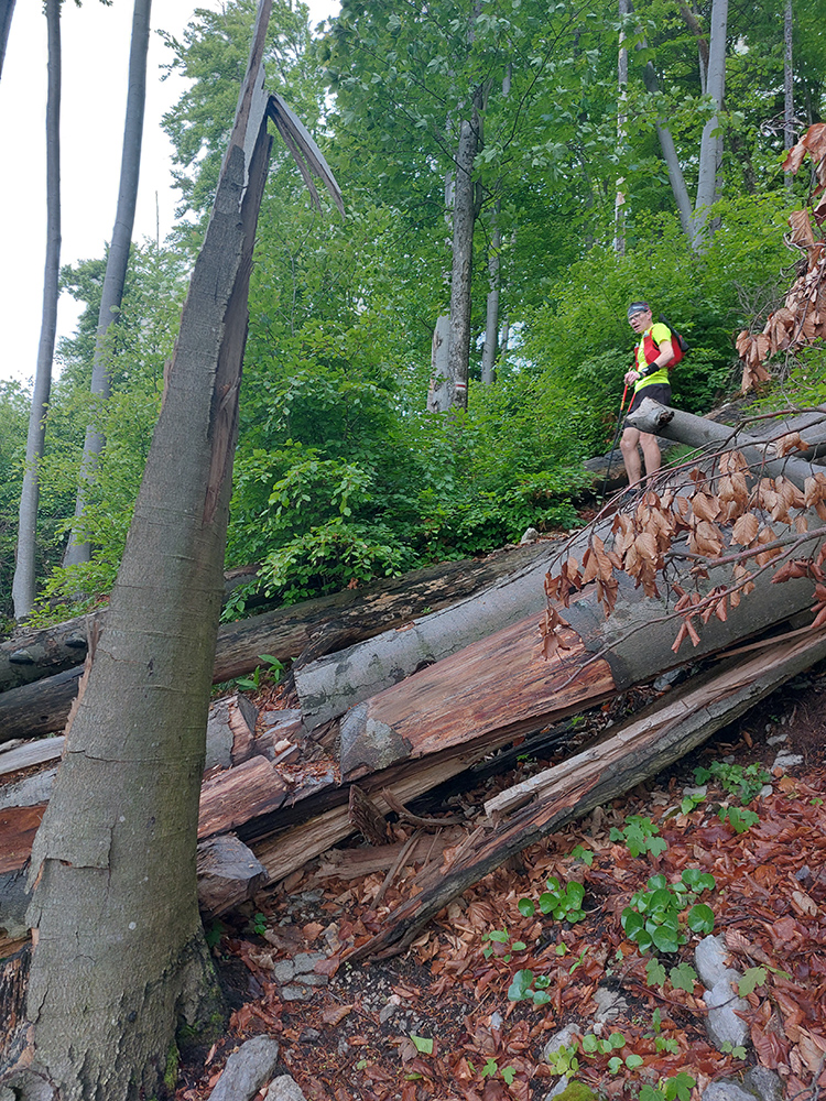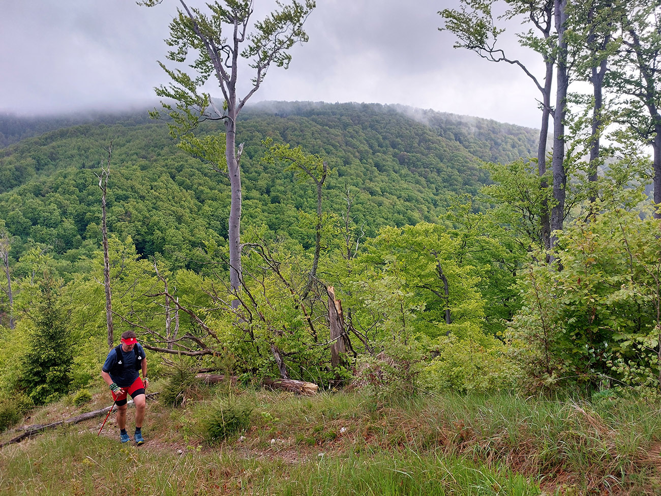 Od Kľaku až po Borišov je to krásna divočinová hojdačka, veľakrát strmo hore aj dole. Miestami aj cez preliezky a ďalšie zarastené úseky. Z neba padlo zopár krúpkových prehánočiek, inak parádne počko. Vyšná Lipová, Jarabiná, Malý Lysec, Štefanová: trochu monotónne to bolo, len s občasným výhľadom von z lesa, najmä doľava, na cúvajúci Rakytov. Možno preto, že v hlave už s výhľadom na blížiacu sa chatu a plánovanú jedinú väčšiu pauzu v nej. Medzitým sme druhý raz tankovali pod Jarabinou.