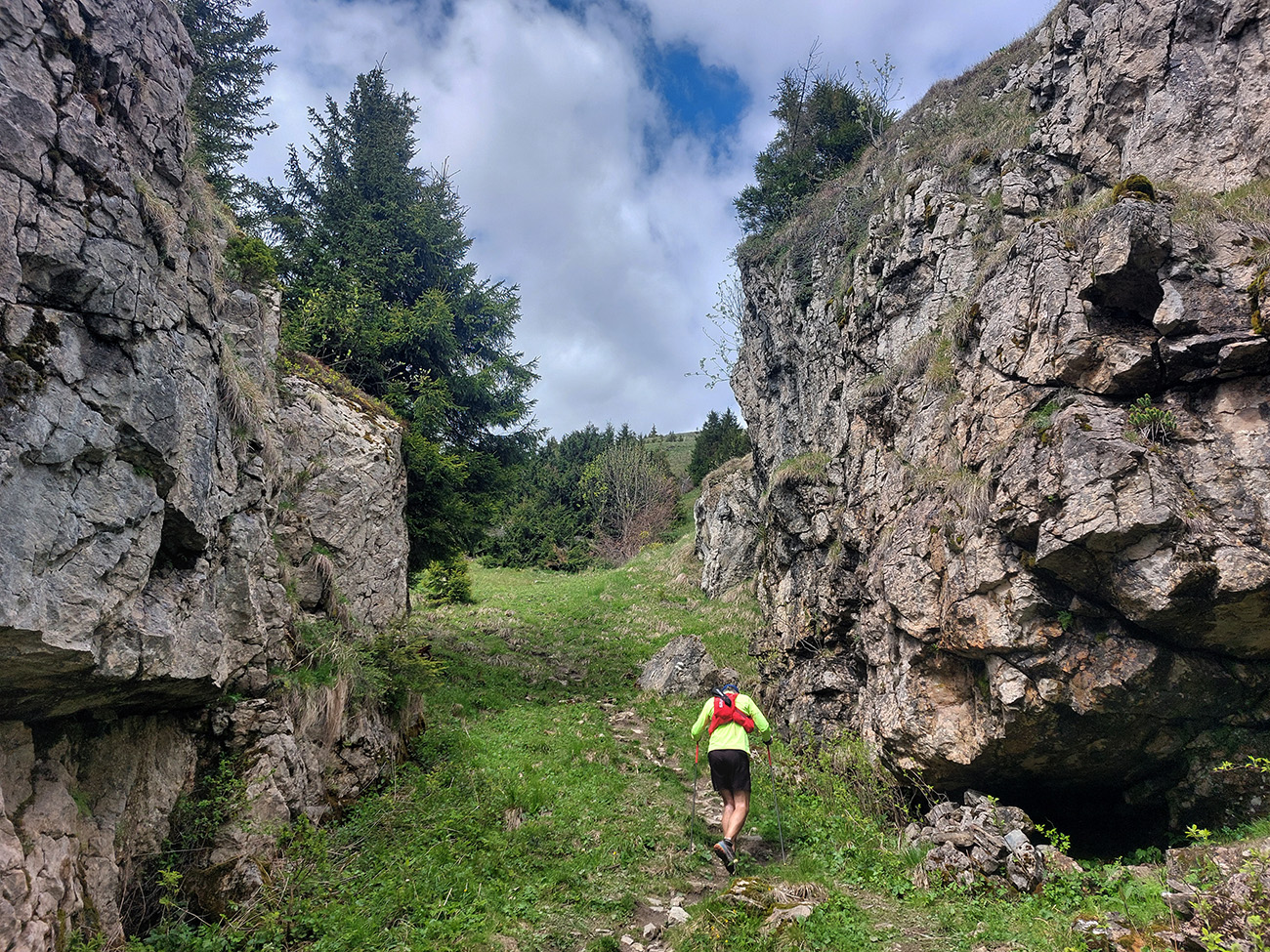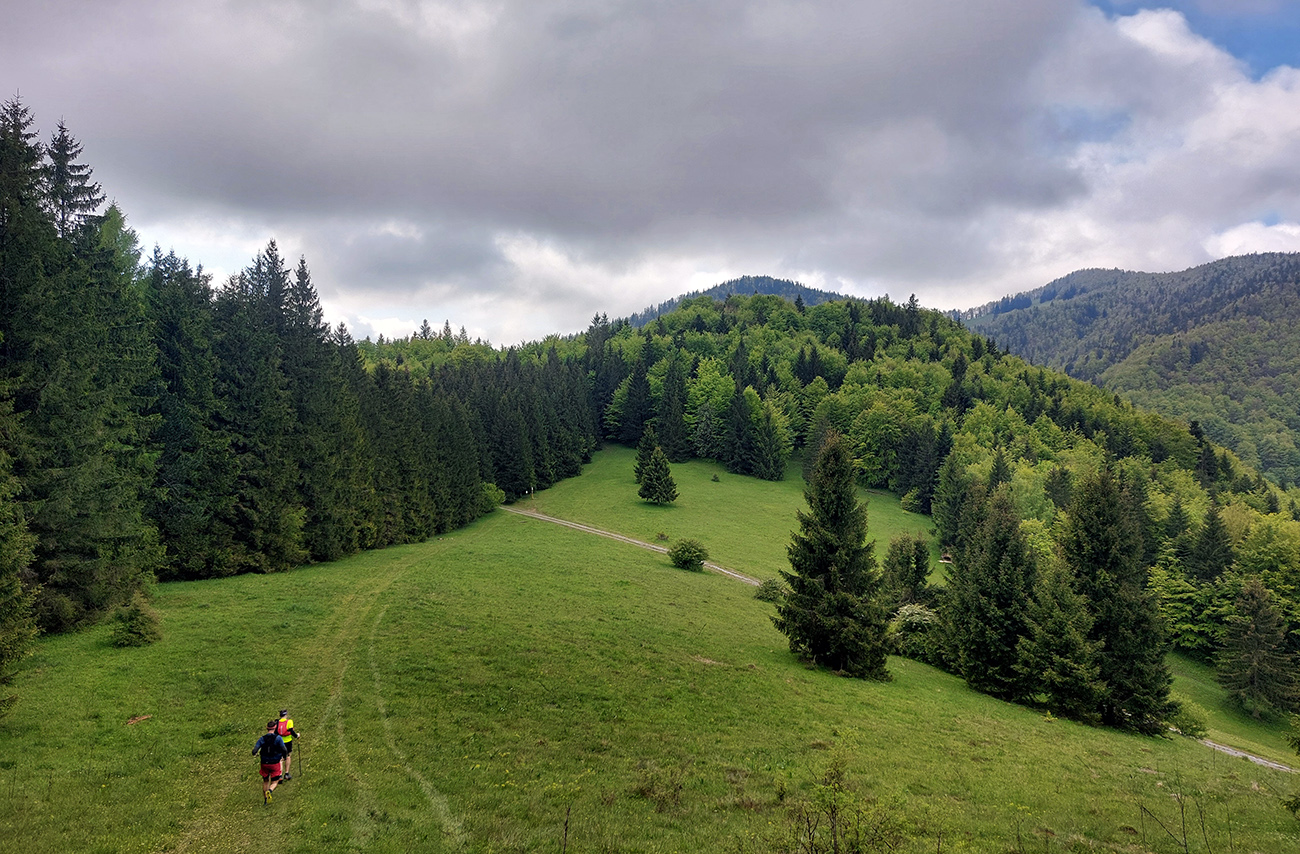 Zostup rovnal sa nástup do ďalšieho pohodového, a najmä príjemne dlhého úseku, kde kiláčiky rýchlo ubiehali a telá nedostávali moc zabrať. Len s pár menšími brdkami na spestrenie: popod Skalnú Alpu a cez Jánošíkovu kolkáreň. Takí rozbehnutí sme ani nerozmýšľali druhý raz zakrčmiť v Granite na Smrekovici (len sme posledný raz dobrali vodu vo vynovenej studničke) a rýchlo sme sa prehupli aj popod Šiprúň. Slnko už klesalo a farby začínali byť ostrejšie.