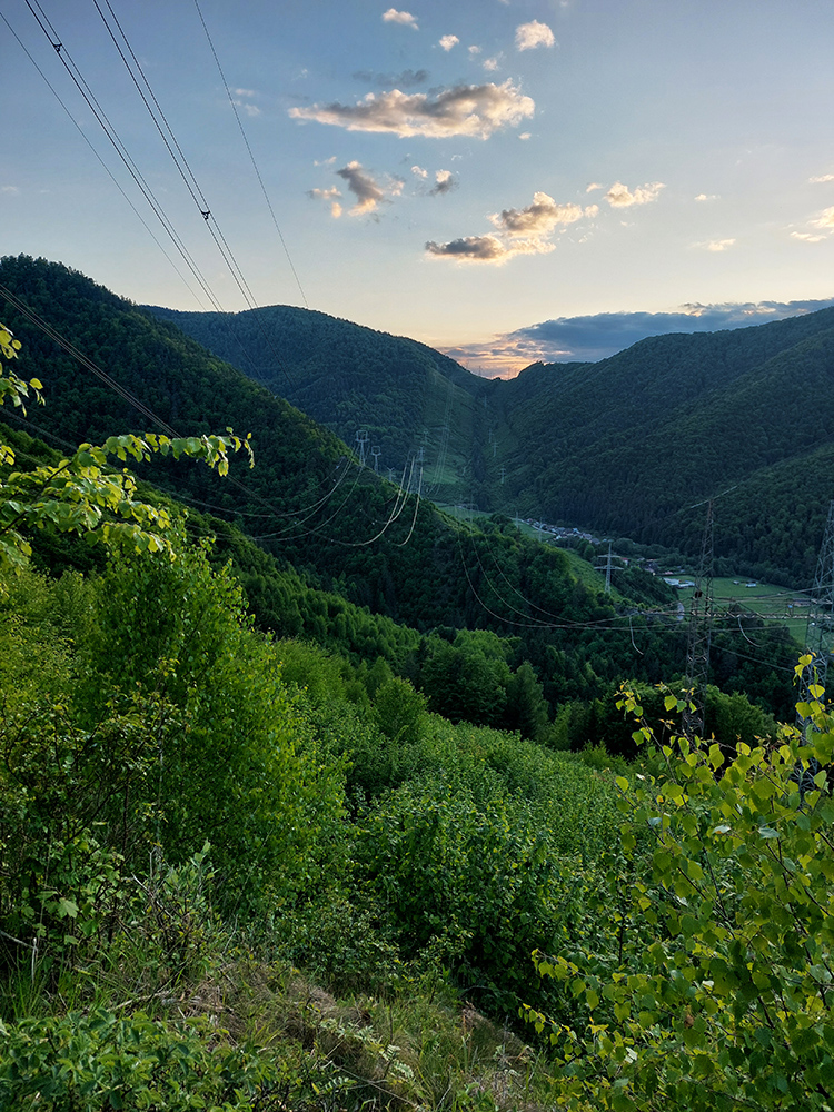 Pred Kútnikovým kopcom nízke slnko presne do očí. Zvyšku partie som trochu ušiel chytať signál, lebo sa nám oproti rútil hlavný Vetroplach, tak nech sa skoordinujeme. Našli sme sa v poslednom klesaní, už tesne nad Ľubochňou, v zarastených rúbaniskách pod elektrikou. Tak ešte spoločné serpentíny do dediny, dokonca aj najslabší kus sa nejako prebudil, ako zavoňal pohodlie auta.