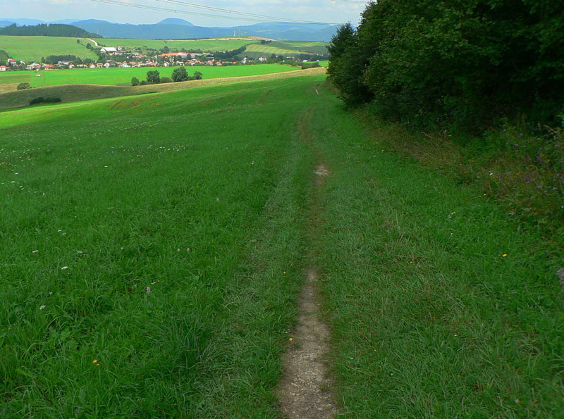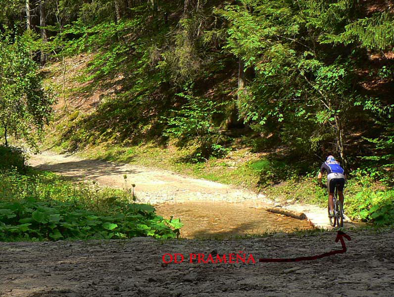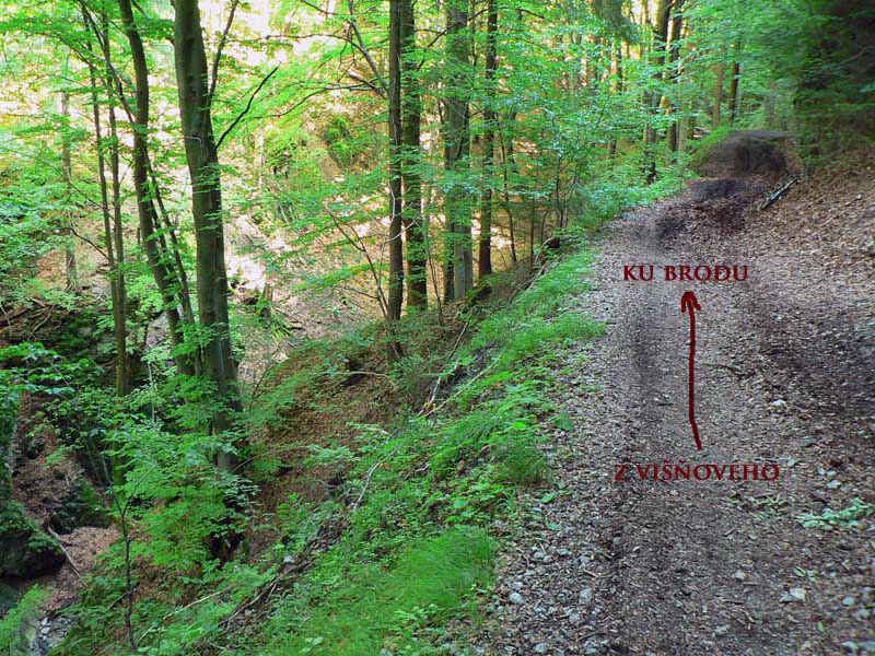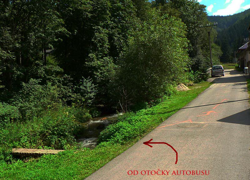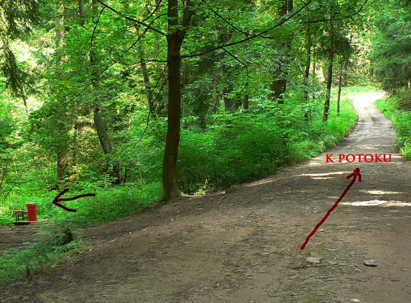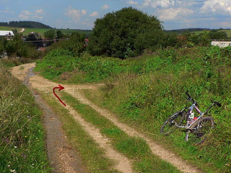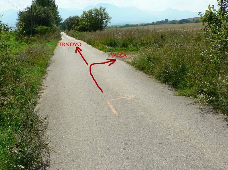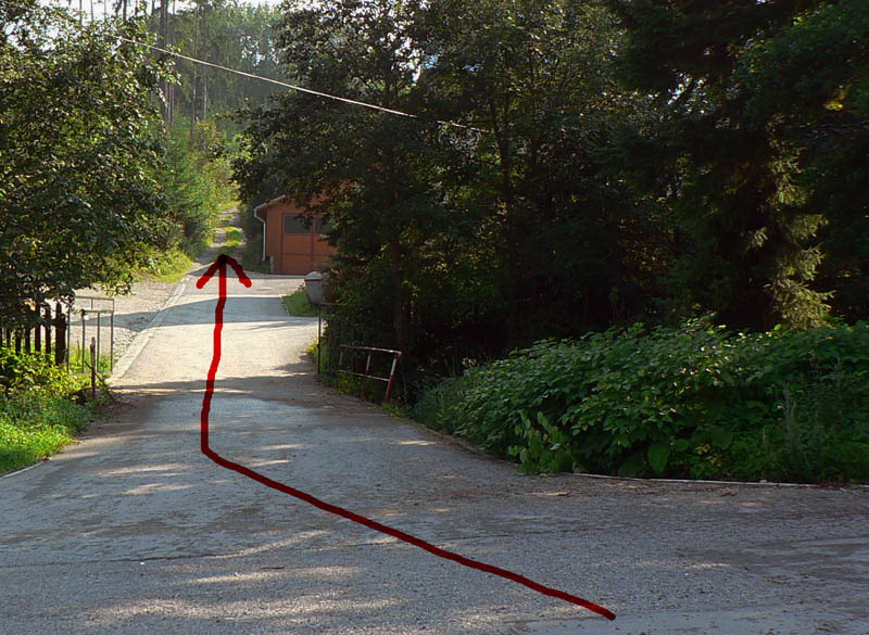 Smer je jasný, len výber cesty môže komplikovať rozostavaná diaľnica. Dá sa vybrať z viacerých možností, nakoniec sa aj tak všetky spoja na ceste poza záhrady (21), ktorá vybehne na asfalt a zbehne do ústia doliny (22). Tam je už treba len poza maštaľ (23) trafiť krížom cez lúku na cestu, ktorá sa o chvíľu ponorí do lesa. Strmo stúpa ponad hlboký kaňon (24) a za brodom (maratónci poznajú :-) vychádza na asfalt záverečného stúpania (25).