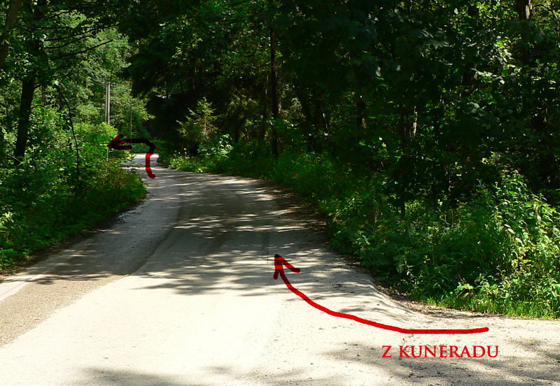 Orientačne jednoduchý prechod hrebeňom cez sedlo Maríková. Najprv asi 7km po asfalte hore dolinou, doprava cez mostík z podvalov na zvážnicu (5) a už len dlhooooo a kľukato do kopca. Na jedinej križovatke (lúka asi 1,5km nad mostíkom) doľava, inak sa nedá zablúdiť. Je to vraj cyklotrasa, ale až jedno vyblednuté „C“ tam visí. Zvážnicu lesáci neveľmi využívajú, pod kolesami tráva (6), miestami dokonca mach, pod sedlom sa už kríky tlačia do cesty, takže je to aj s masážou. Zo sedla do Kuneradu tiež jednoducho – 2km pod sedlom sa cesta vynára z lesa, lúku s križovatkou zvážnic treba len prefrčať rovno, inde sa nedá zle odbočiť. Zvážnica rovná, dá sa to miestami aj naplno pustiť, po 2km už asfalt. Zámok Kunerad je ľahko minúť, treba si k nemu odbočiť doprava na konečnej autobusu, ale niet veľmi čo obzerať (7). Na hornom konci dediny sa dá dočapovať fajná vodička z prameňa - pre tých, ktorým sa potok hnusí (8). Nižšie v dedine čapujú tým, ktorým sa aj prameň hnusí :-)