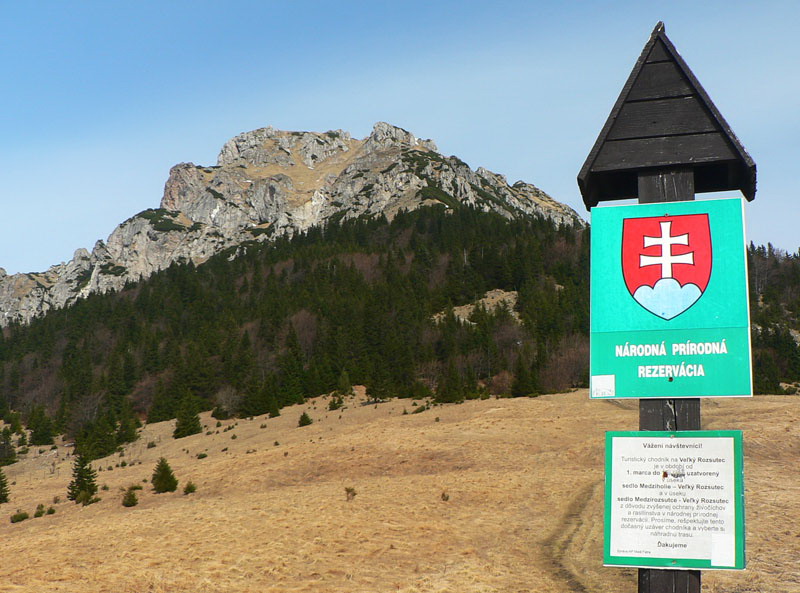 Samozrejme že napriek tomu vidieť vo svahu ľudí. Vraciame sa k nižšiemu rázcestiu (smerovník pod Rozsutcom) a pokračujeme po modrej, traverzom východného svahu Veľkého Rozsutca do sedla Medzirozsutce. Chodník vedie najprv pasienkami (parádne výhľady na východ), v druhej polovici lesom. Miestami je ešte nepríjemný ľad, poskrývaný pod hrubými nánosmi bukového lístia. Tesne pred vynorením z lesa na Medzirozsutcoch trčia vo svahu zaujímavé skalky a z nich je pekný pohľad na sedlo aj Malý Rozsutec. Na ten je výstup povolený, takže neváhame a o polhodinku už si vychutnávame kruhový výhľad z vrcholu. Spestrením je v oboch smeroch exponovaná skalná pasáž, zaistená reťazami, ale teraz v predjarí aj ľad v lese.