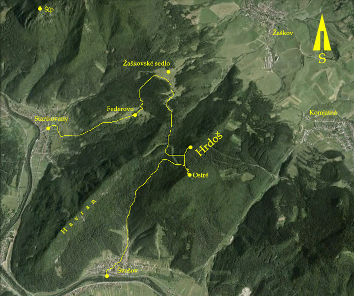 Prechádzka je to inak krátka, ani na 5 hodín nie, s parádnymi výhľadmi a ozaj magickými miestami, ale s presunmi medzi nimi po zvážniciach, rozrytých drevorubačmi. V lese plno bordelu po ľudských lesných prasatách. Väčšina trasy mimo značiek. Hodina zo Švošova do Sedla pod Ostrým (dlhšie, ale krajšie je to po hrebeni Havrana), 20 minút zo sedla na Ostré - časy na mape VKU (č.121) sú použiteľné, na smerovníkoch nezmysly (1:35 a 15min). Z Federova na stanicu v Stankovanoch ledva 30 minút z kopca.