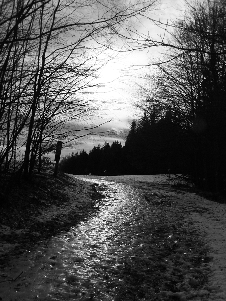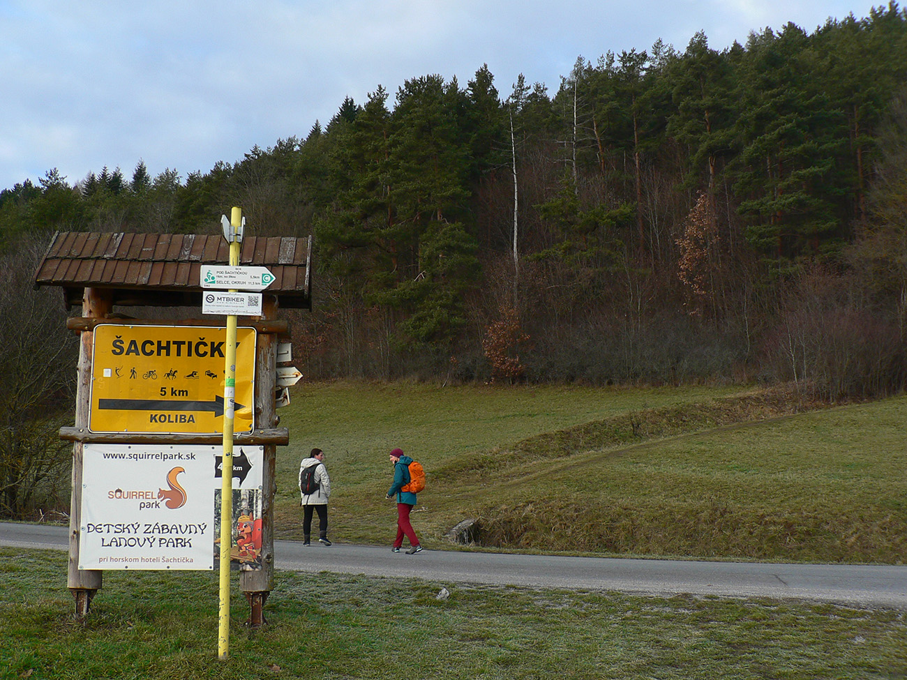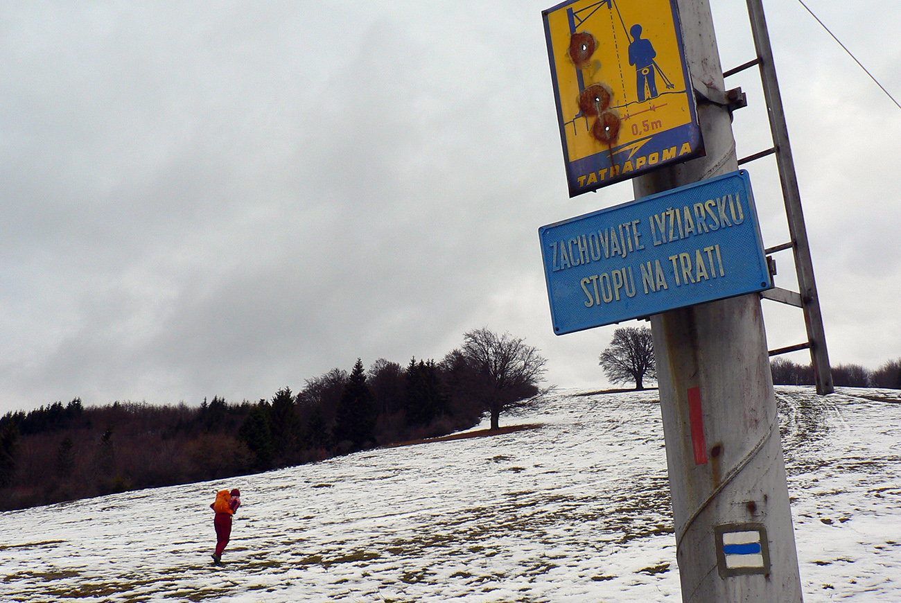 Kto sa chce prejsť viac do kopca, ide z juhu. Keďže sme tentokrát boli autom, odparkovali sme ho priamo na križovatke nad Nemcami (500 m) a dali sme si okruh. V podstate okolo Nemčianskej doliny, ktorou ide asfaltka hore do strediska – po modrej na Panský diel a po žltej dole cez Selčiansky diel. Aj keď na modrú sme sa napojili až pri vstupe do lesa pod Hrádkom a zo žltej sme ušli už na vrchole Selčianskeho dielu. Ale možností je tu neúrekom a ciest ešte viac. Najmä sme využili koncoročnú snehovú mizériu – južné svahy takmer suchou nohou.